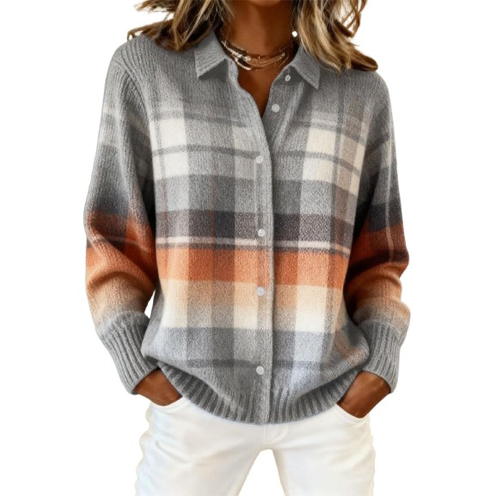 Women’s Plaid Print Buttoned Cardigan Sweater Soft Long-Sleeve Checkered Knitwear|Clothing