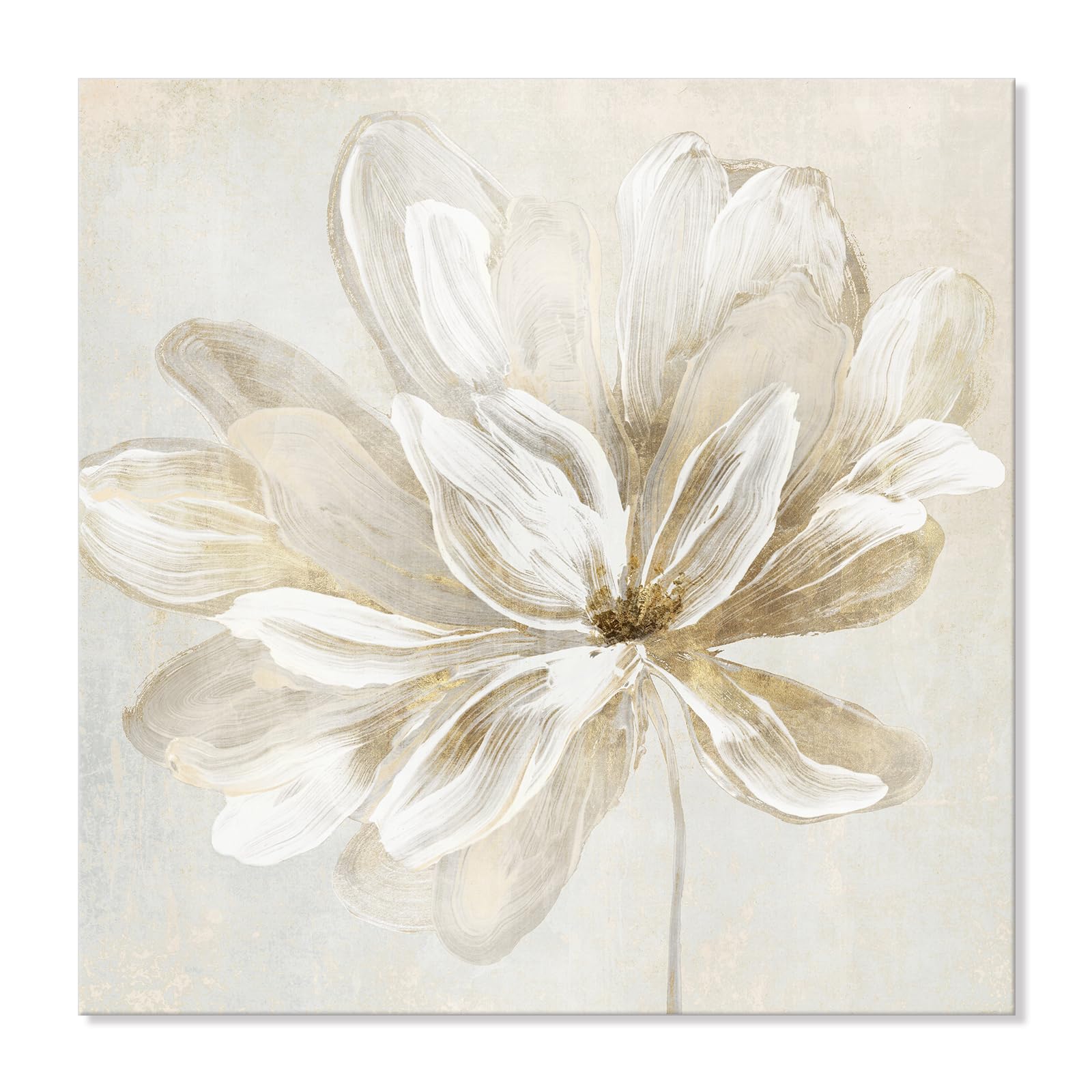 SEVEN WALL ARTS White Flower Wall Art Beige and Gold Blooming Flower Abstract Floral Artwork Print Poster for Living Room Bedroom Bathroom Home Office|Home & Garden