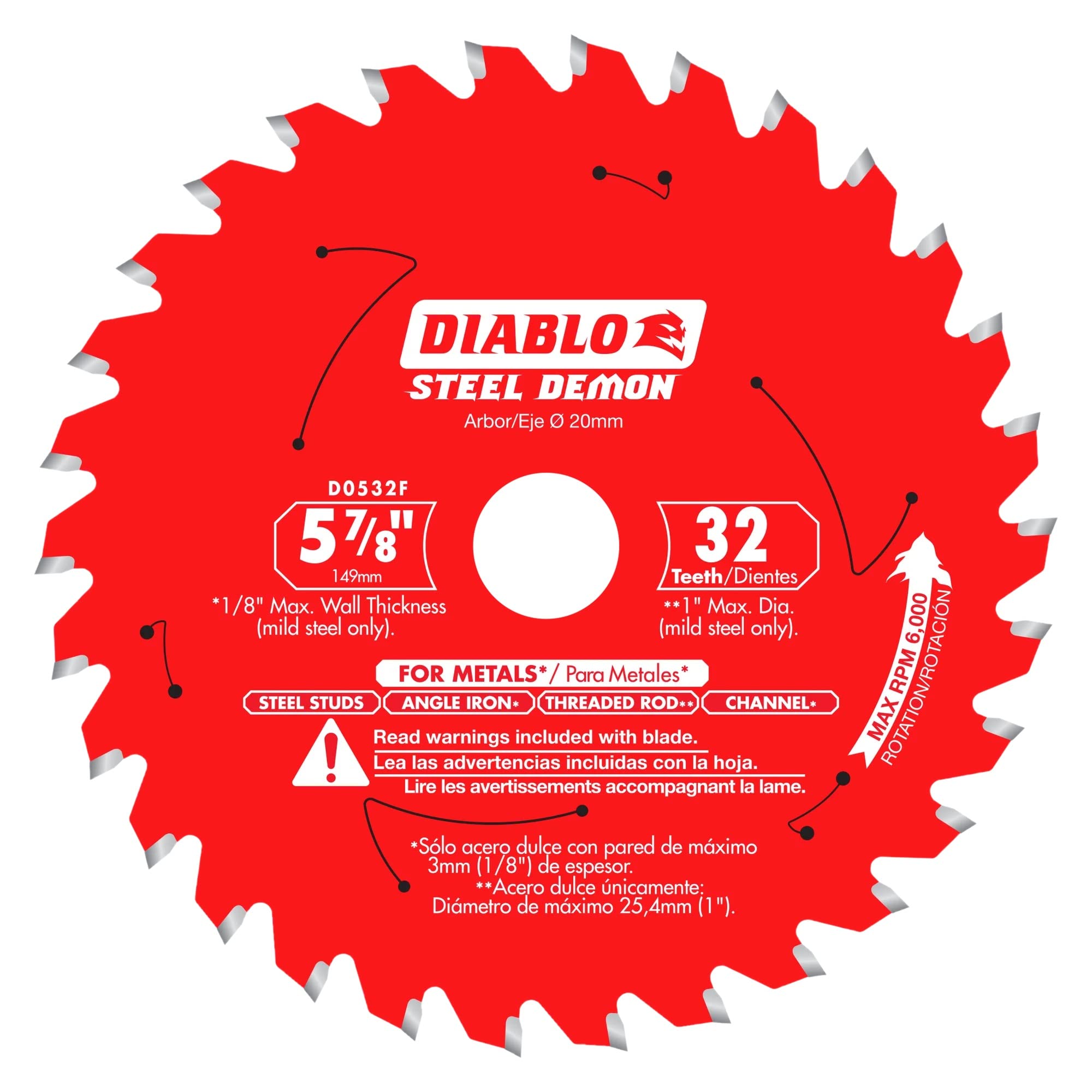 Diablo Steel Demon Saw Blade for Medium Metal - 5-7/8" Diameter, 32 TCG Teeth, 5/8" Arbor, .059" Kerf, 0° Hook Angle, .039" Plate, 5000 Max RPM -|Tools
