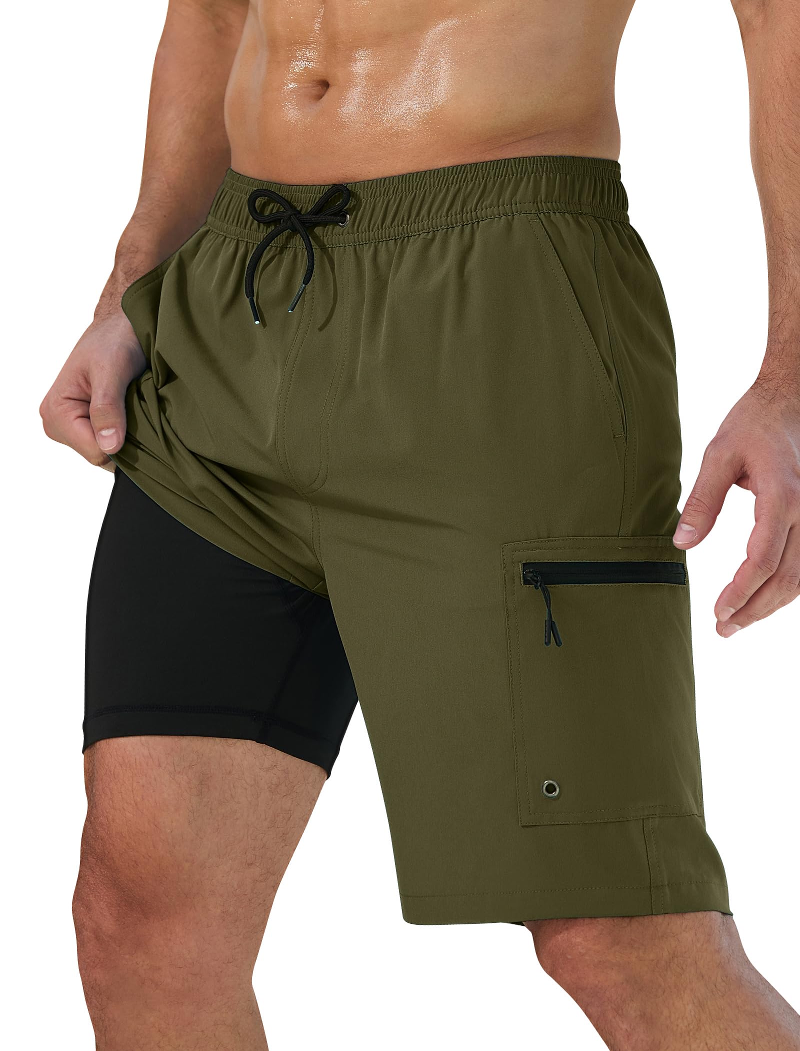 Vogyal Mens Swim Trunks with Compression Liner Zipper Cargo Pockets Bathing Suit 9 Inch Quick-Dry Swimming Shorts|Clothing