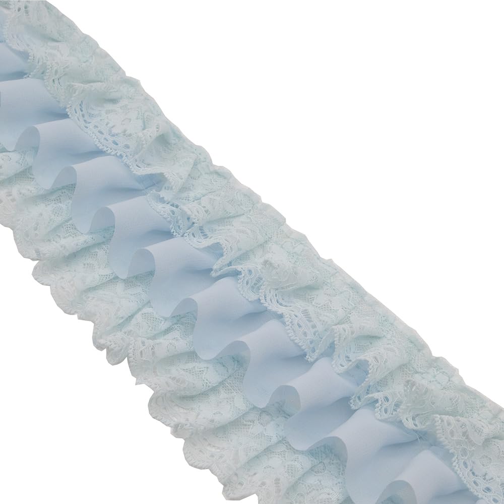 3-3/4" Wide Pleated Lace Trims for Cloth Sewing DIY Craft Supply (Sky Blue-2 Yeards)|Home & Garden