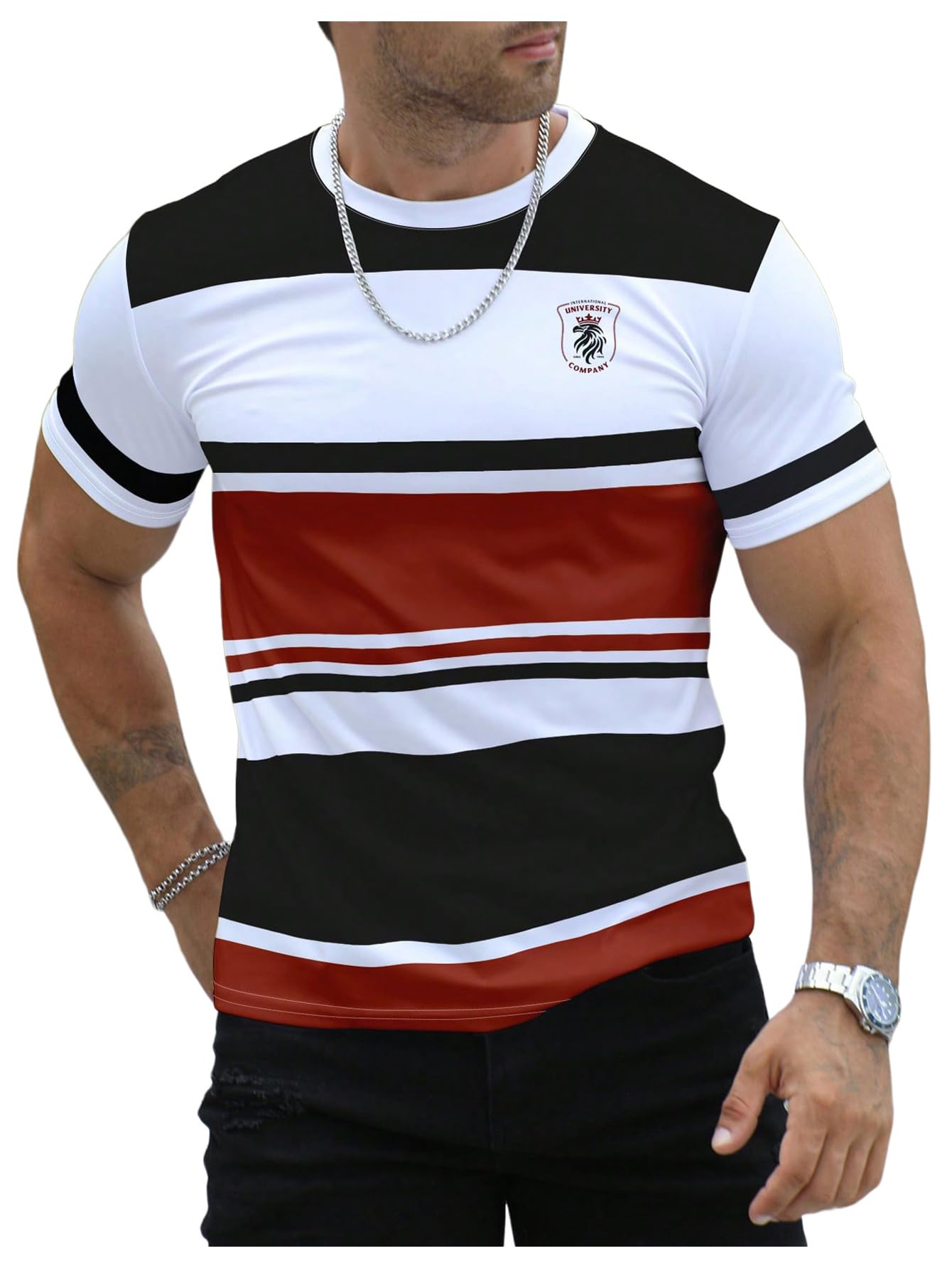Floerns Men's Striped Print Color Block Short Sleeve T Shirt Crewneck Summer Tee Shirts|Clothing