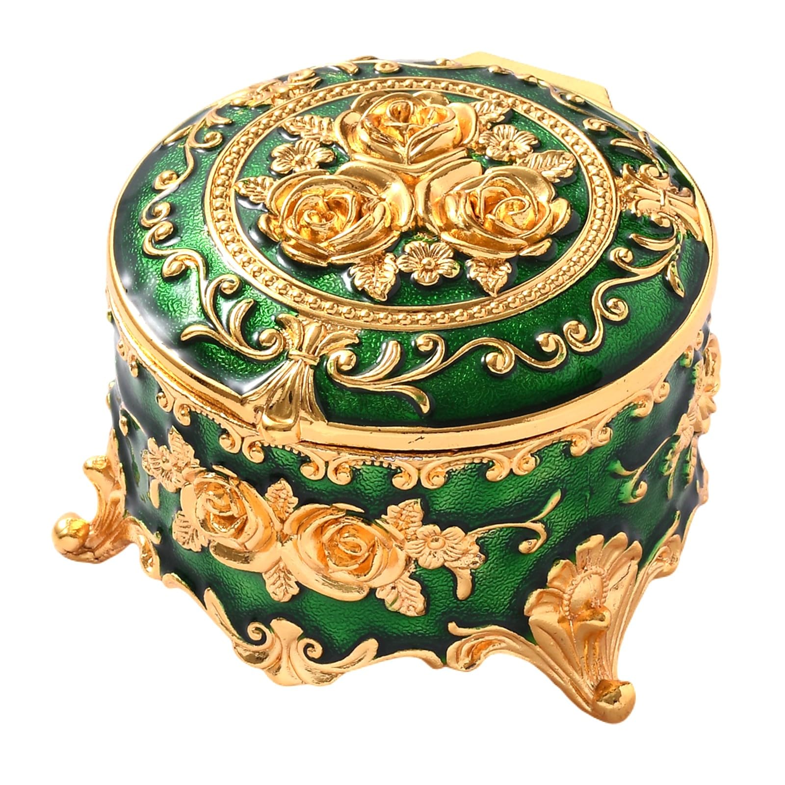 Qsabv Vintage Jewelry Box, Gold Round Treasure Ring Box, Metal Trinket Organizer Keepsake Box Gift for Girl Women, Green|Home & Garden