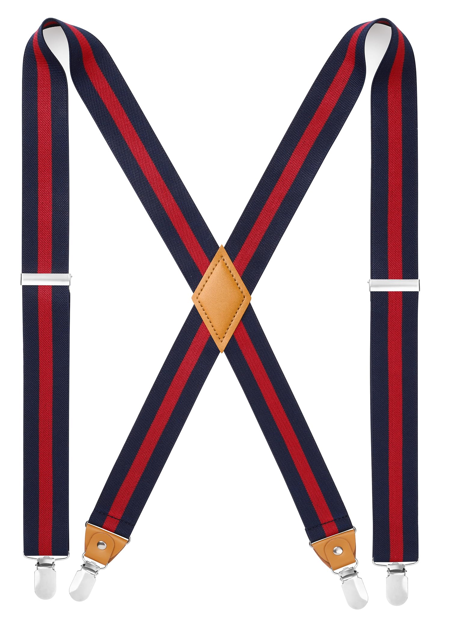 HISDERN Suspenders for Men X-Back 1.4" Adjustable Elastic Suspender Braces Strong 4 Clips for Work Trousers Wedding|Clothing