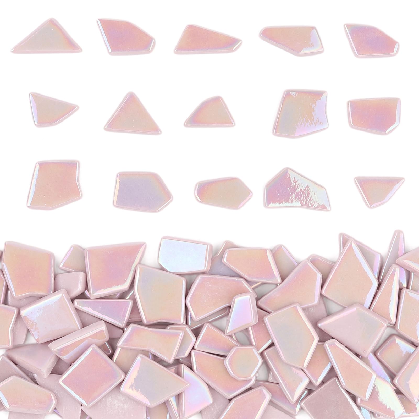 Youway Style Iridescent Glass Mosaic Tiles for Crafts Bulk,200g Pink Broken Mosaic Glass Pieces for Garden Crafts Kits,DIY Mosaic Art Decor|Home & Garden