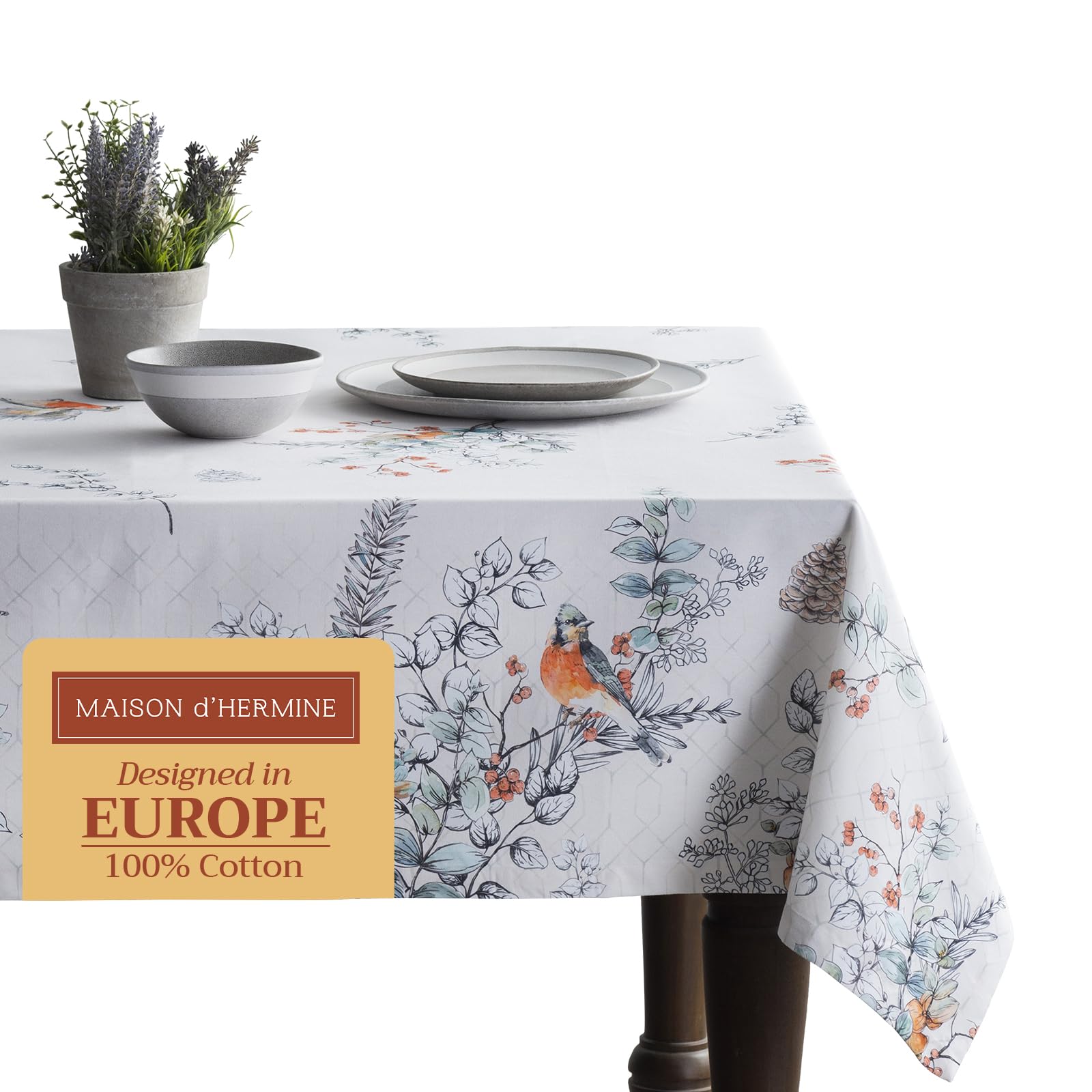 Maison d' Hermine Table Cloth Square Table 100% Cotton 60 x 60 Inches Fall Tablecloth Reusable Everyday Use for Thanksgiving Christmas Decorations|Home & Garden