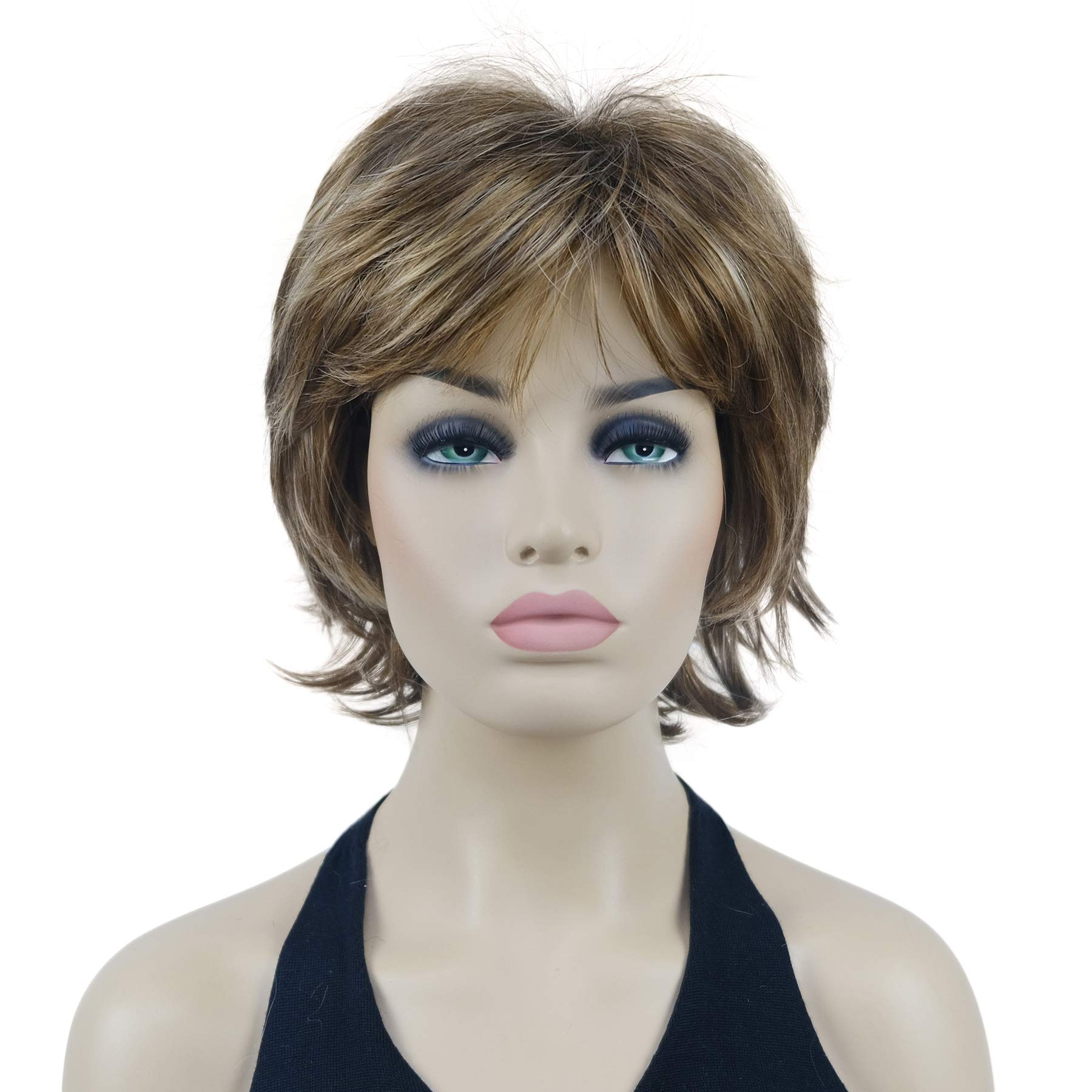 Lydell Short Layered Shaggy Wavy Full Synthetic Wigs (V6 Light Reddish Brown with Blonde Highlight)|Health & Beauty