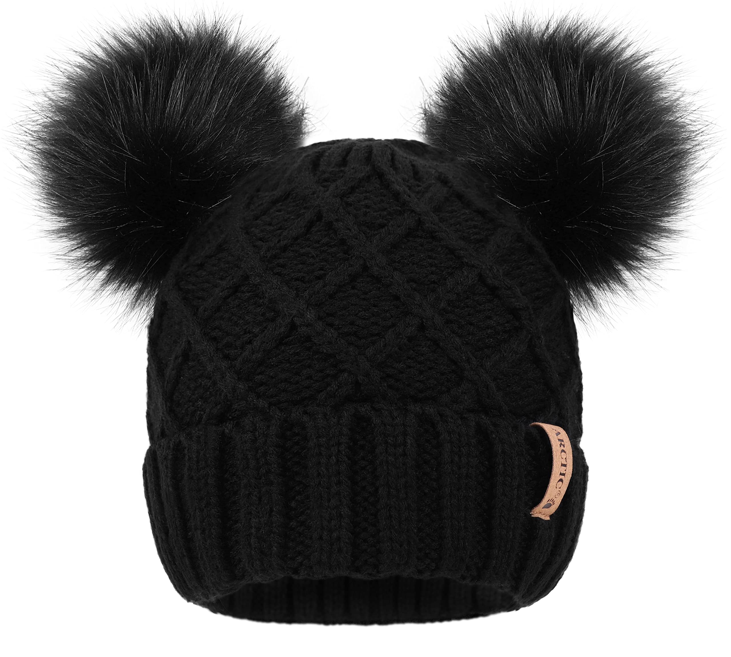 Arctic Paw Womens Winter Hat Cable Knit Beanie for Women Faux Fur Pompom Ears|Clothing