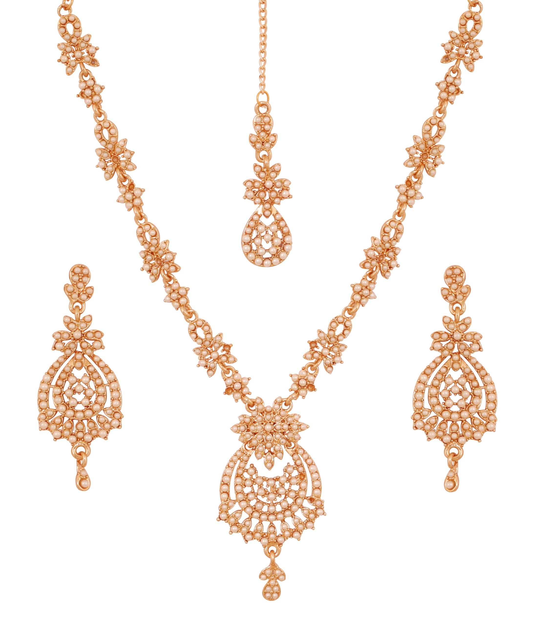 Touchstone Indian jewelry sets for women maang tikka wedding guest gold necklace bollywood jewellery set pageant elegant prom bride accessories|Jewelry
