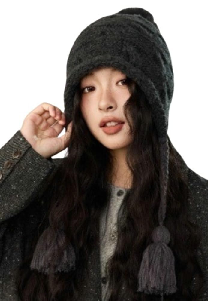 Trendy 2025 Knit Cap for Women Slouchy Beanie with Long Ear Flaps & Pom Poms Cozy Solid Color Hat for Fall Winter|Health & Beauty
