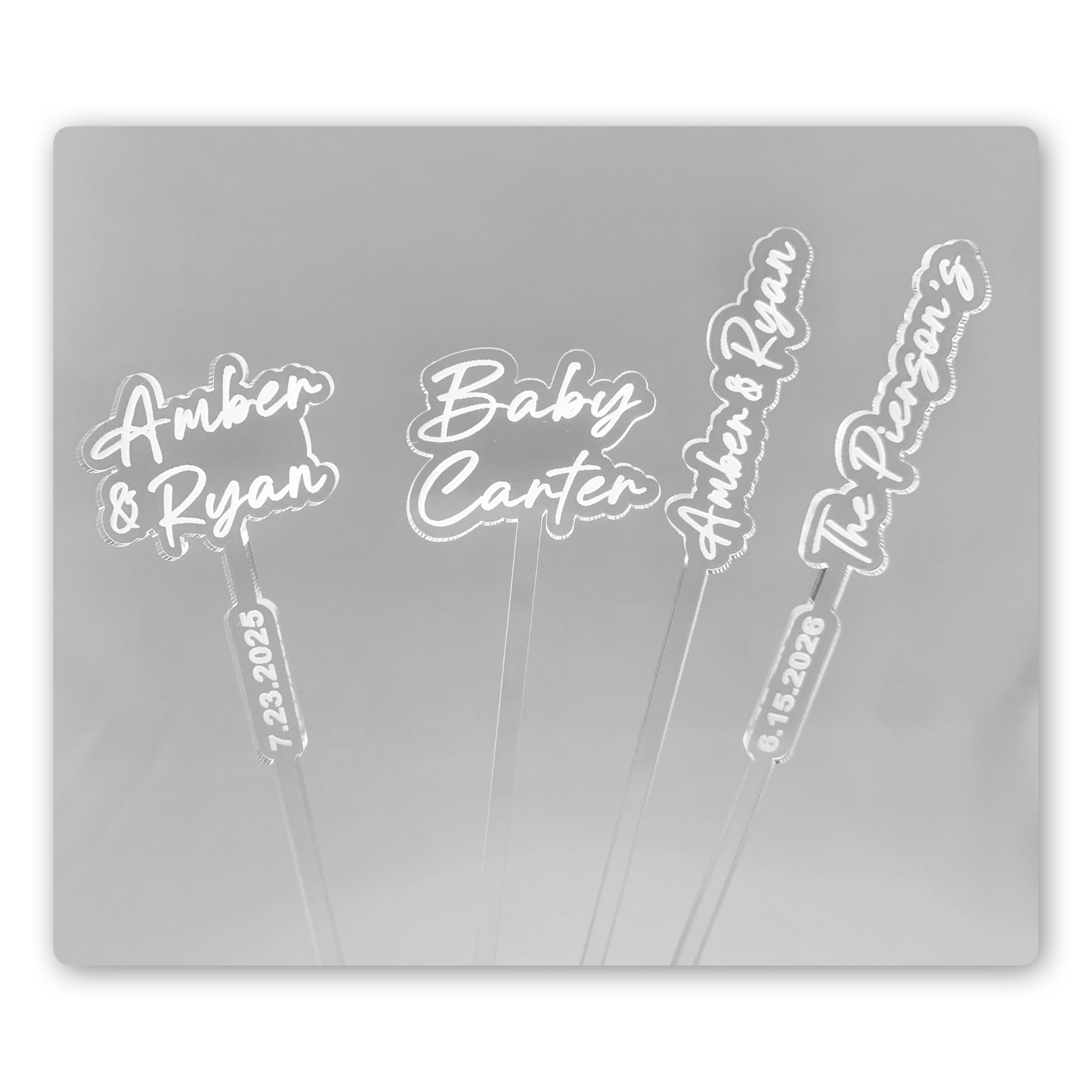 25 Personalized Drink Stirrers for Celebrations | Custom Stir Sticks | Last Name Wedding Swizzle Sticks| 25pc-Set Engraved Clear Acrylic|others
