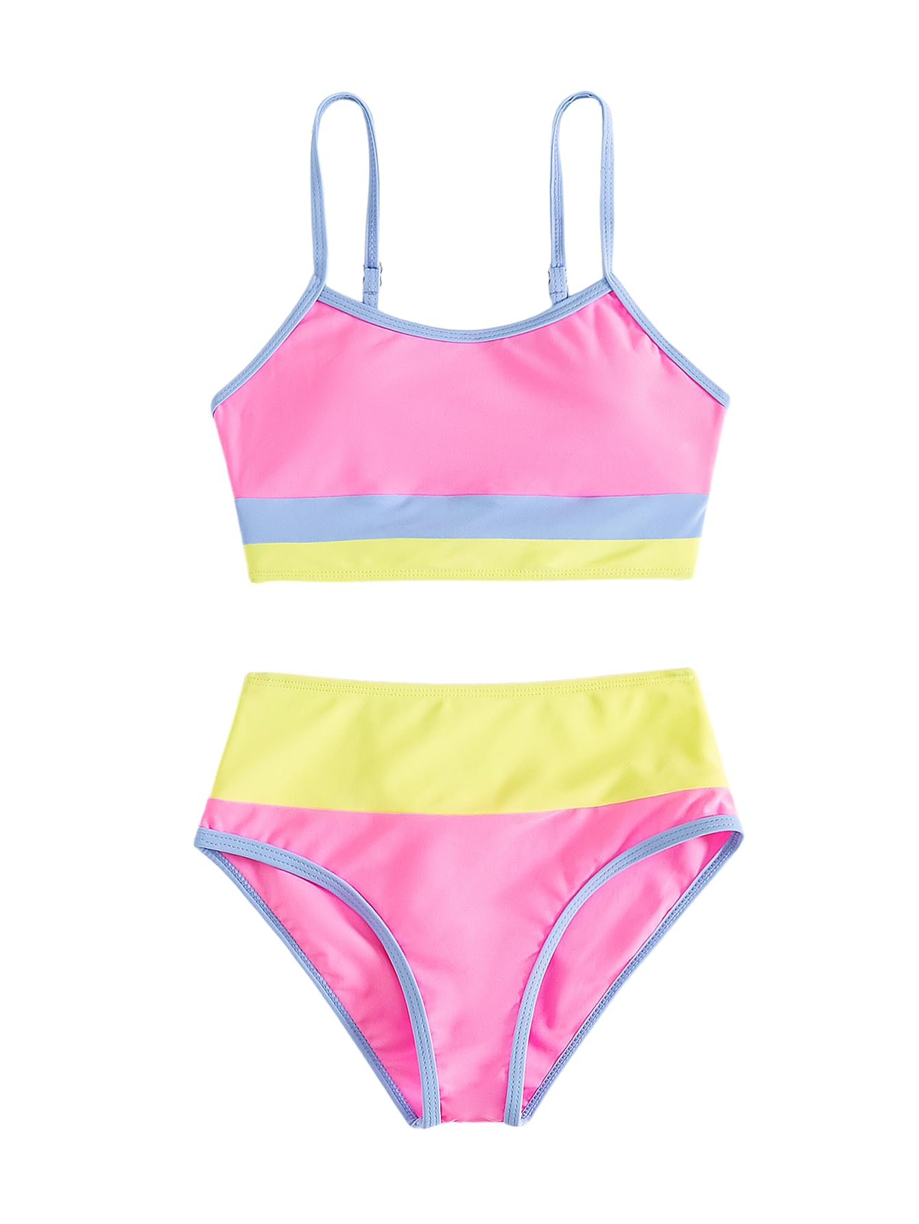 Verdusa Girl's 2 Piece Colorblock High Waisted Bikini Sets Swimsuit Swimwear Bathing Suits|Clothing