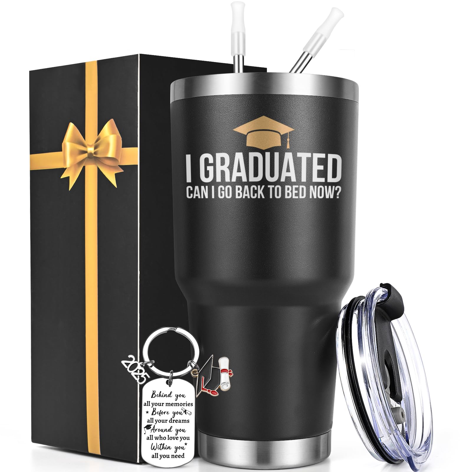 Lifecapido Graduation Gifts, I Graduated Can I Go Back To Bed Now 30oz Insulated Tumbler with Keychain and Graduation Card, High School College|Kitchen & Dining