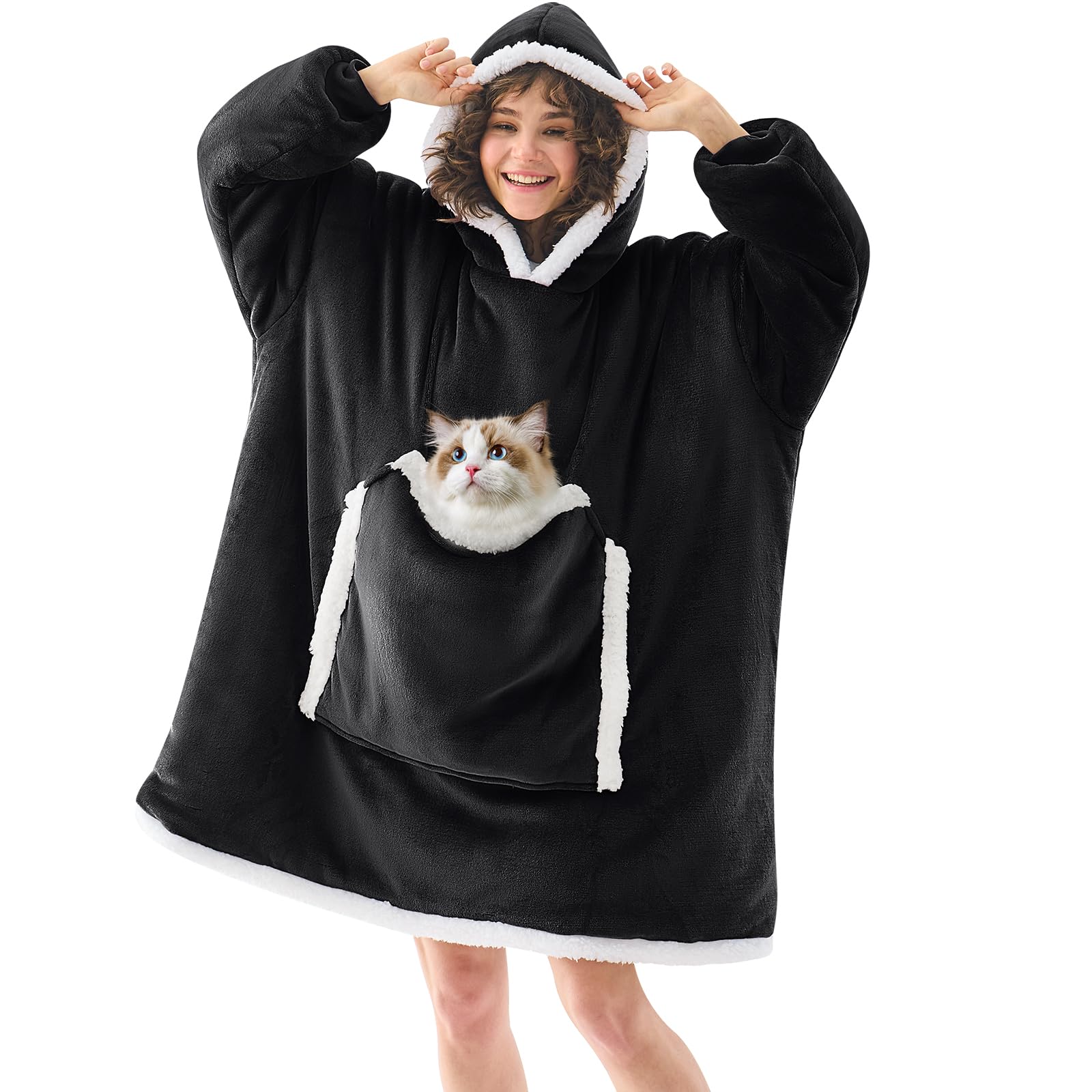 JOYWOO Black Wearable Blanket Hoodie,Oversized Cat Lovers Sweatshirt Blanket for Adult & Teens,Birthday Gifts for Women Men Mom Girl Boys,Cozy Fuzzy|Home & Garden