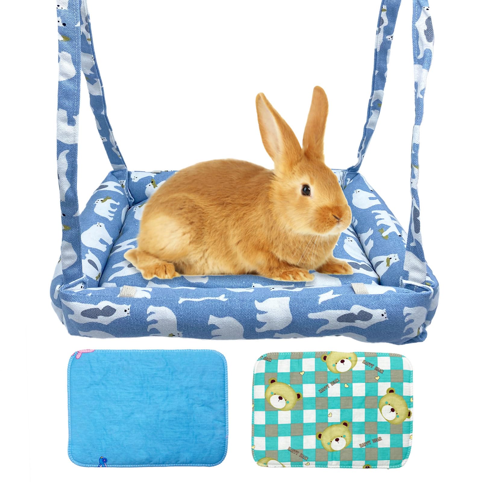 RMNHPTK Rabbit Hammock Swing Small Animal Hanging Swing Hammock Bed with 2 Pads Pet Hammock Swing for Rabbits Guinea Pigs Chinchillas Kittens (Blue|Pet Supplies