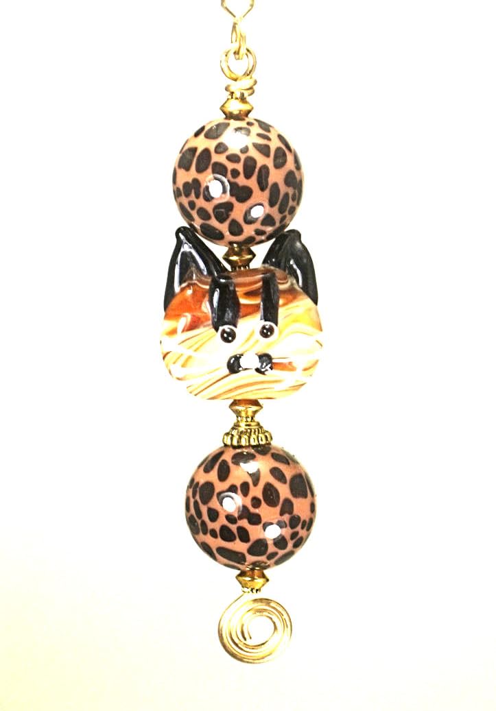 Loveable Tawny Amber Tabby Cat Animal Cheetah Leopard Print Lampwork Glass Light or Ceiling Fan Pull|Home & Garden