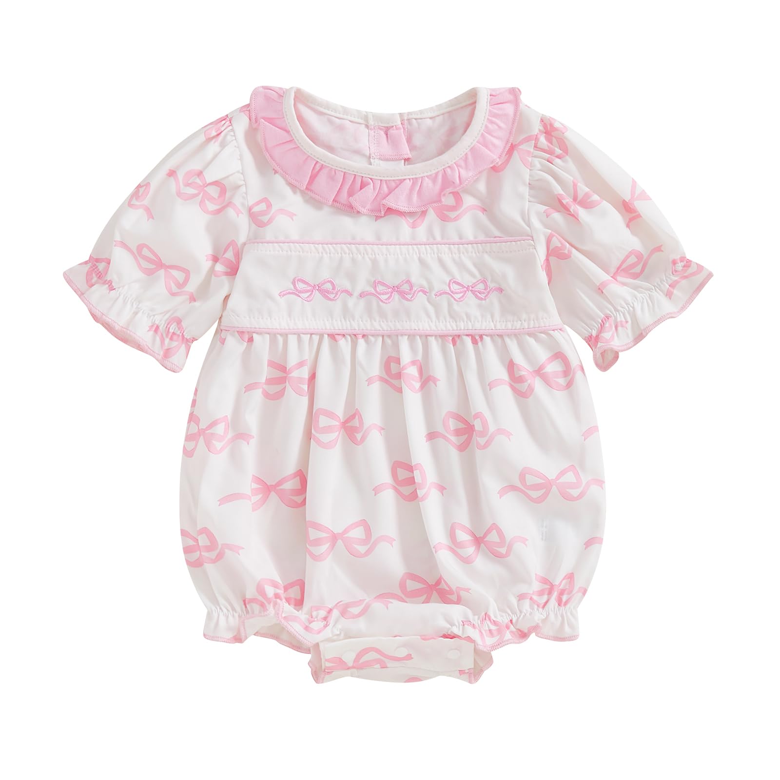 Baby Girl Outfit Short Sleeve Frill Round Neck Bow Embroidery Print Bubble Romper Infant Newborn Girls Clothes Spring Summer|Clothing