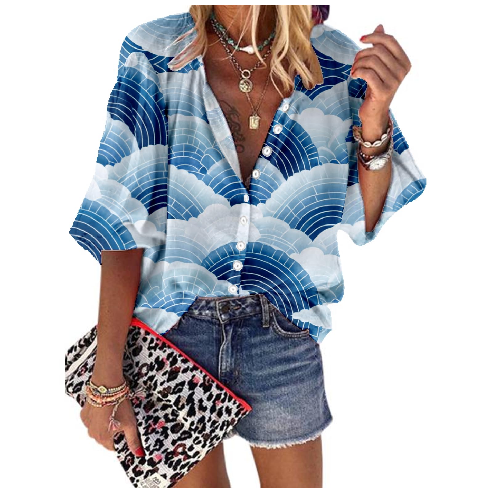 Biacolum Hawaiian Shirts for Women 3/4 Length Sleeve Womens Tops Casual Loose Fitted Button Down Shirts for Women|Clothing