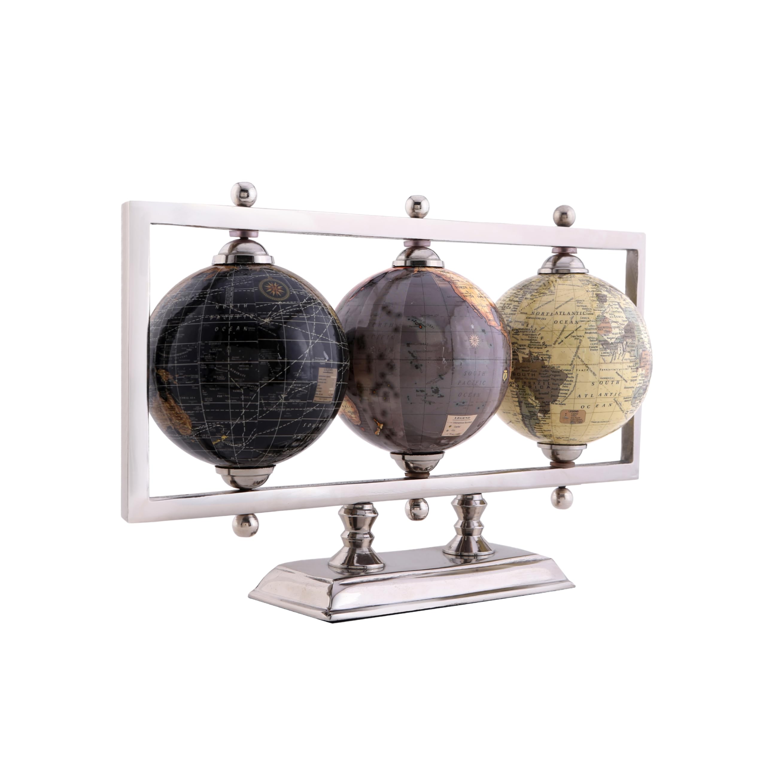 Rely+ Set of 3 4'' World Globes Sturdy Metal Silver Stand Rotating Desktop Globe For Geographic Home Decorative Desk Table Office Gift - Book Shelf|Toys