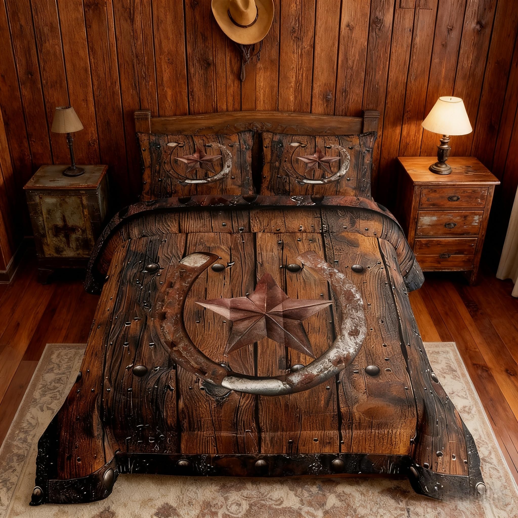 Manfei Western Texas Star Comforter Set King Size, Rustic Horseshoe Bedding Set 3pcs for Kids Boys Girls Room Decor, Cowboy Plank Quilt Set Country|Home & Garden