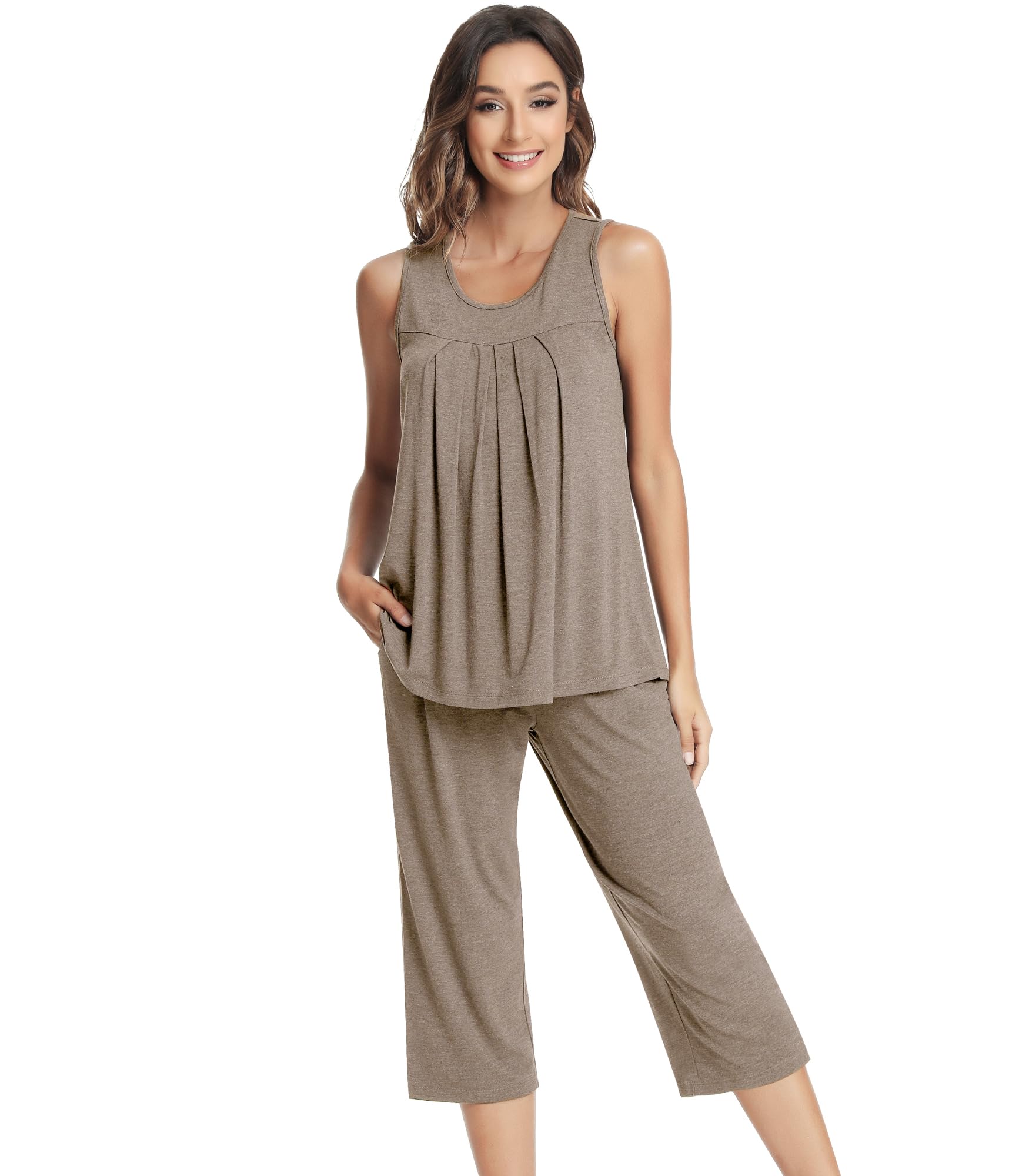 NACHILA Pajamas for Women-Viscose Made from Bamboo, Sleeveless Pjs Tank Top Capri Pants Pajama Sets Cooling Sleepwear|Clothing