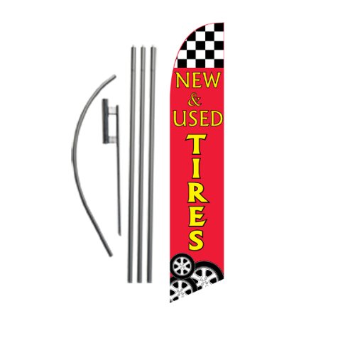New and Used Tires Advertising Feather Banner Swooper Flag Sign with Flag Pole Kit and Ground Stake|Lawn & Garden