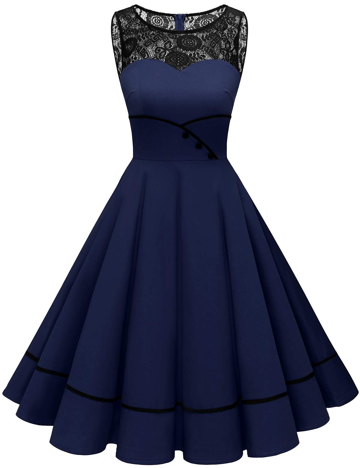 Bbonlinedress Women's 50s Vintage Floral Lace Retro Rockabilly Sleeveless Round Neck Cocktail Party Swing Dress|Clothing
