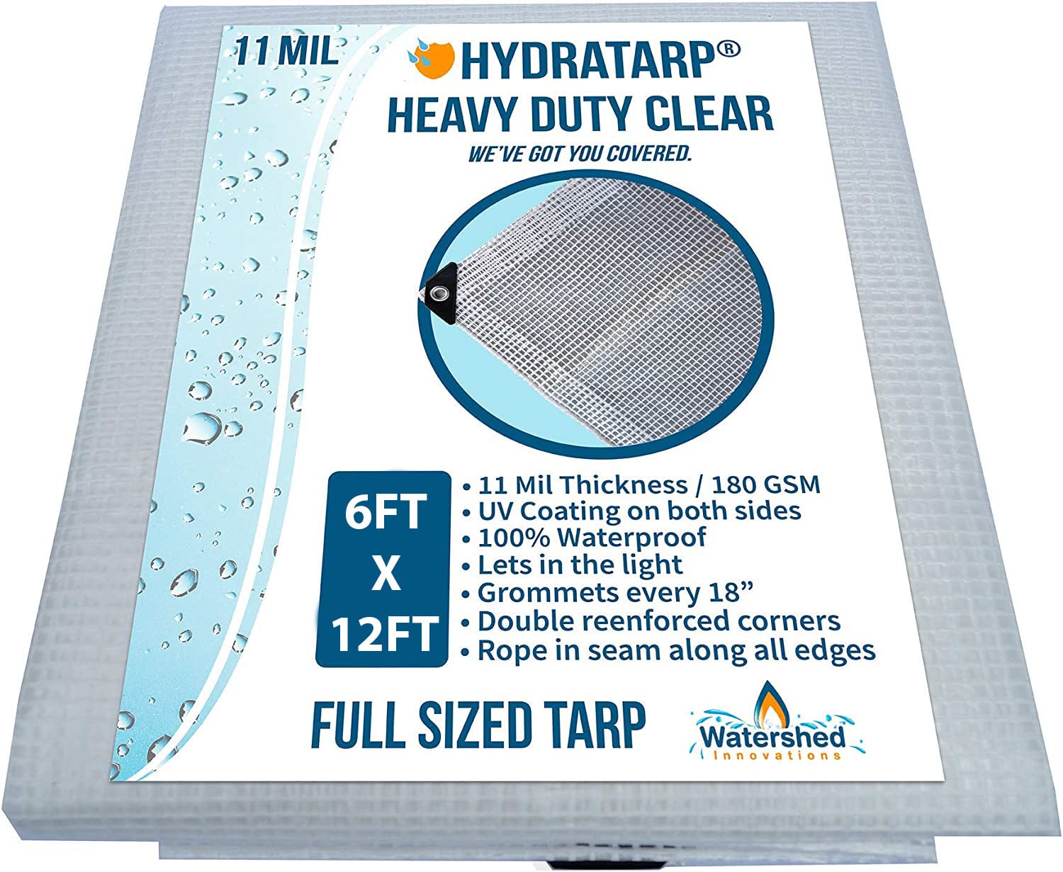 Watershed Innovations HydraTarp, UV Coated 11 Mil Thick Clear Greenhouse Tarp for Outdoor Camping, RV, Trucks and Trailers, 6 by 12 Feet|Home & Garden