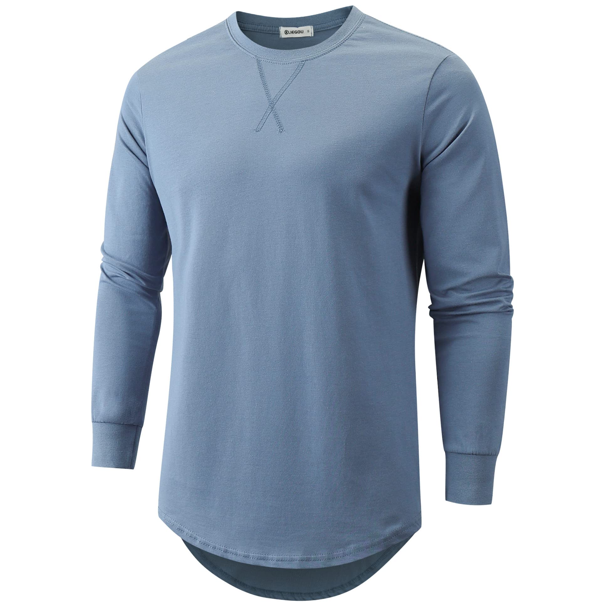KLIEGOU Mens 100 Cotton Hipster Hip Hop Longline Crewneck T-Shirt Pre - Shrunk S-4XL|Clothing