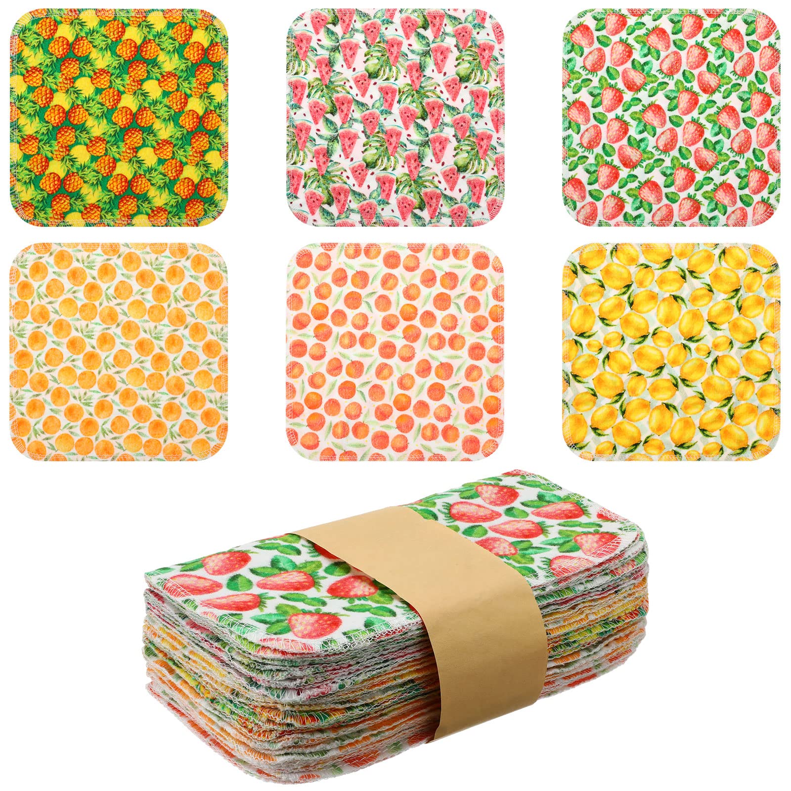 Kinlop 24 Pcs Spring Easter Lunchbox Cloth Napkins Bulk Reusable 2 Ply 8" x 8" Fruit Flannel Style Wipes Washable Soft Cotton Sturdy Absorbent Cloth|Baby & Toddler