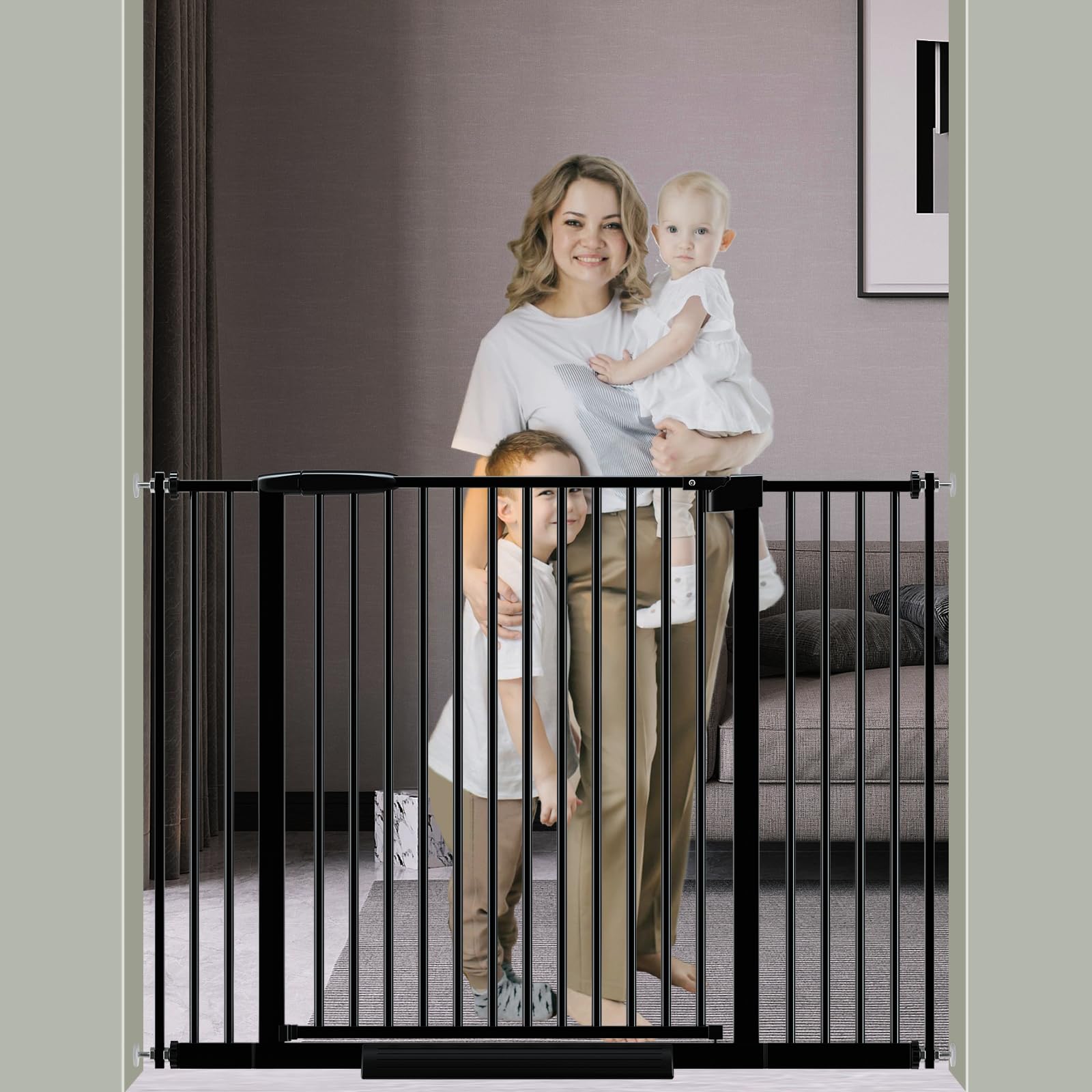 DEARBB Extra Wide Baby Gate Ultra Narrow Spacing 30.11-77.36" Pressure Mounted Double Lock Swing Auto Close Walk Through Metal Safety Pet Gate for|Baby & Toddler