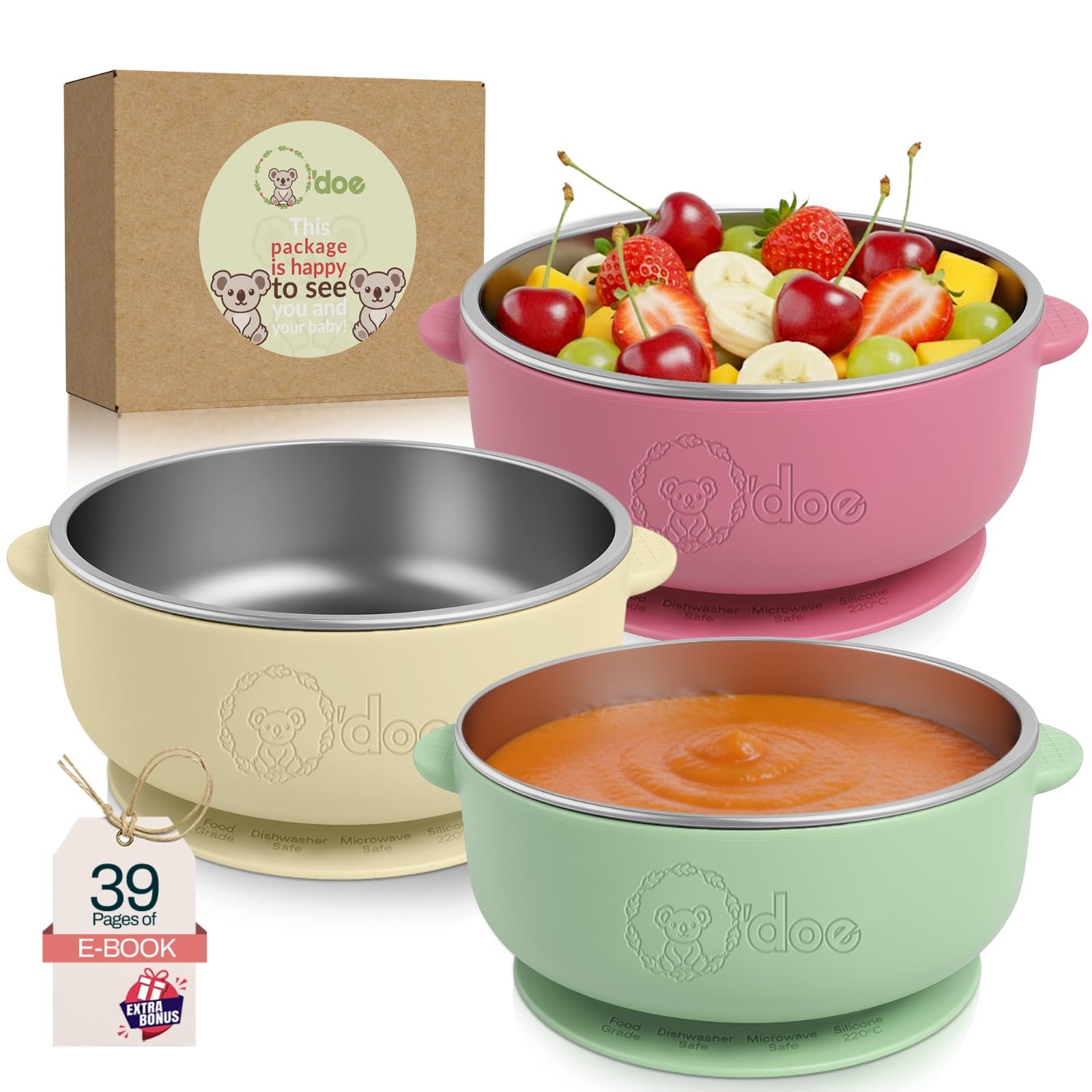 o'doe Suction Bowls for Baby - Non-Toxic Stainless Steel Baby Bowls 5" with Non-Slip Removable Silicone Shell - BPA-Free Toddler Bowls for Babies Self|Baby & Toddler