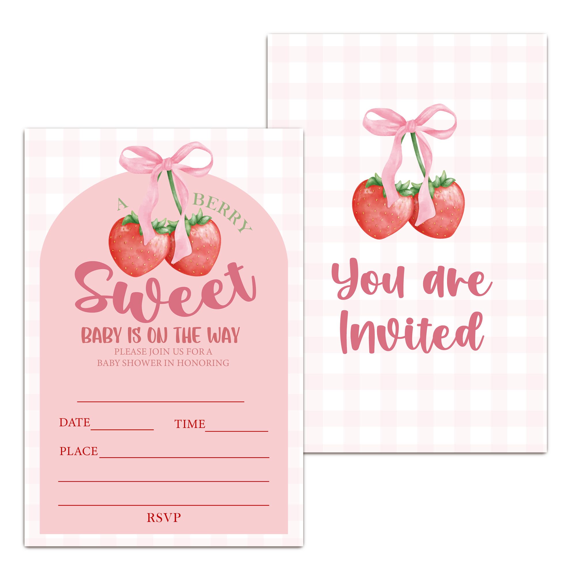 RPLCSPC Sweet Girl Baby Shower Invitation Strawberry Baby Shower Gender Neutral Party Fill in Invites Cards Pink Bow Invitation Paper Cards for Gender|Baby & Toddler