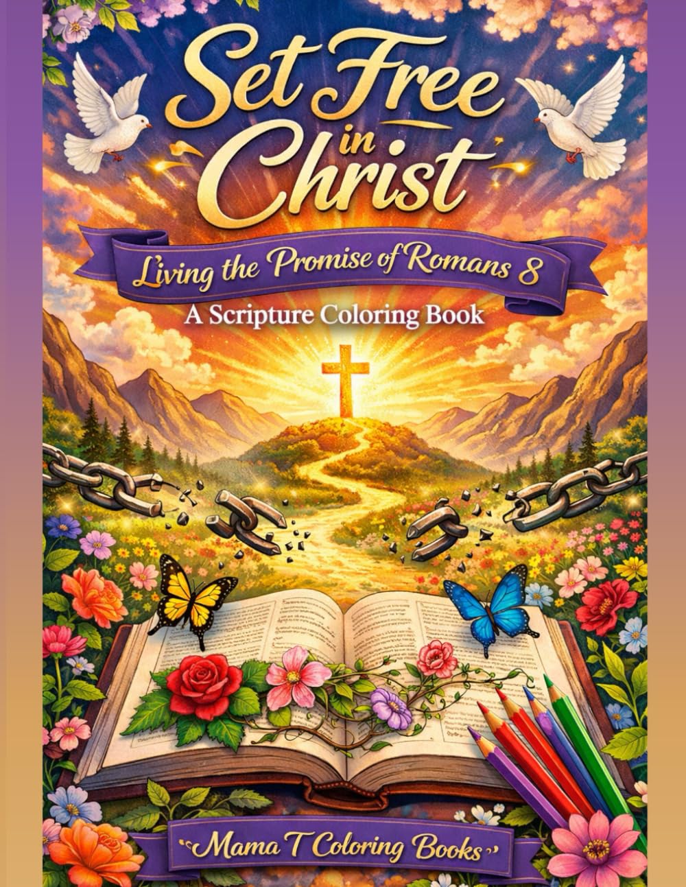 Set Free in Christ: Living the Promises of Romans 8: A Scripture Coloring Book: A Scripture Coloring Book for Christian Men Women Children Featuring .|Books
