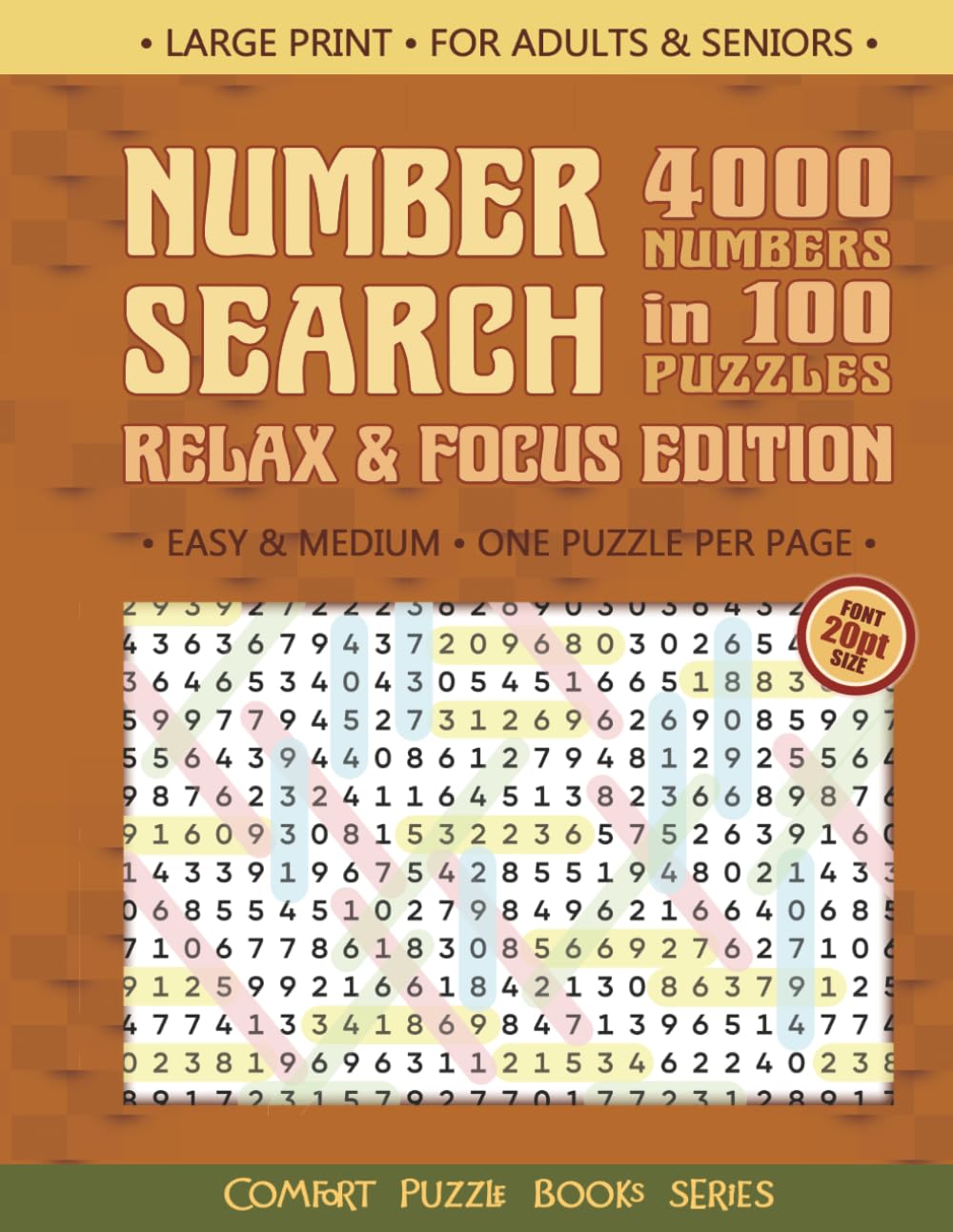 Large Print Number Search Book – Relax & Focus Edition: 4000 Numbers in 100 Puzzles for Adults & Seniors | Easy & Medium | One Puzzle Per Page (|Books