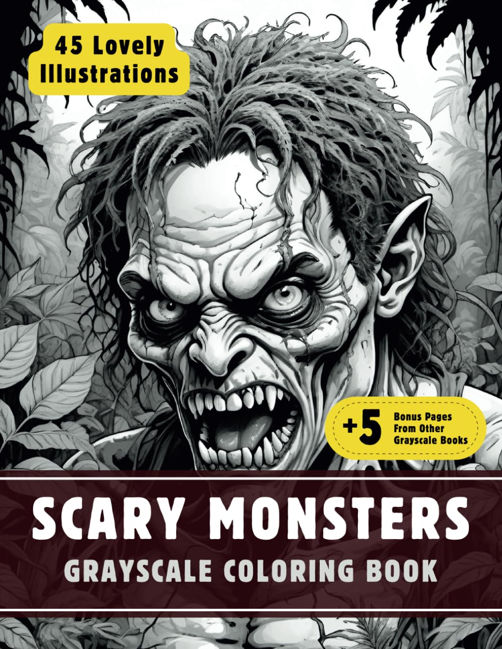 Scary Monsters Coloring Book: Grayscale Coloring Book for Adults with 45 High-Quality and Unique Illustrations for Relaxation and Stress Relief. (|Books
