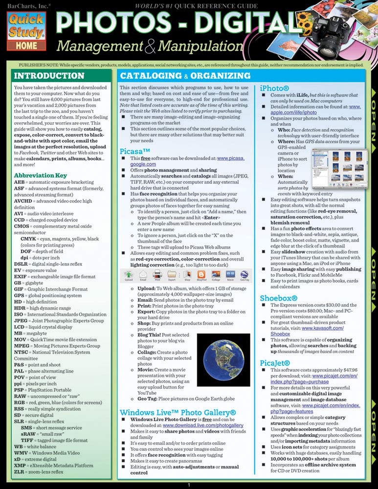 Photos-Digital: Management & Manipulation (Quick Study Home)|Books