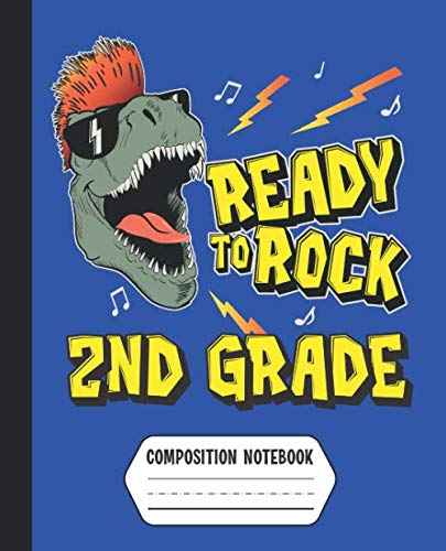 Ready to Rock 2nd Grade Composition Notebook: Boys Rock & Roll T-Rex Dinosaur Back to School Supplies (Dashed Midline Primary Writing Paper)|Books