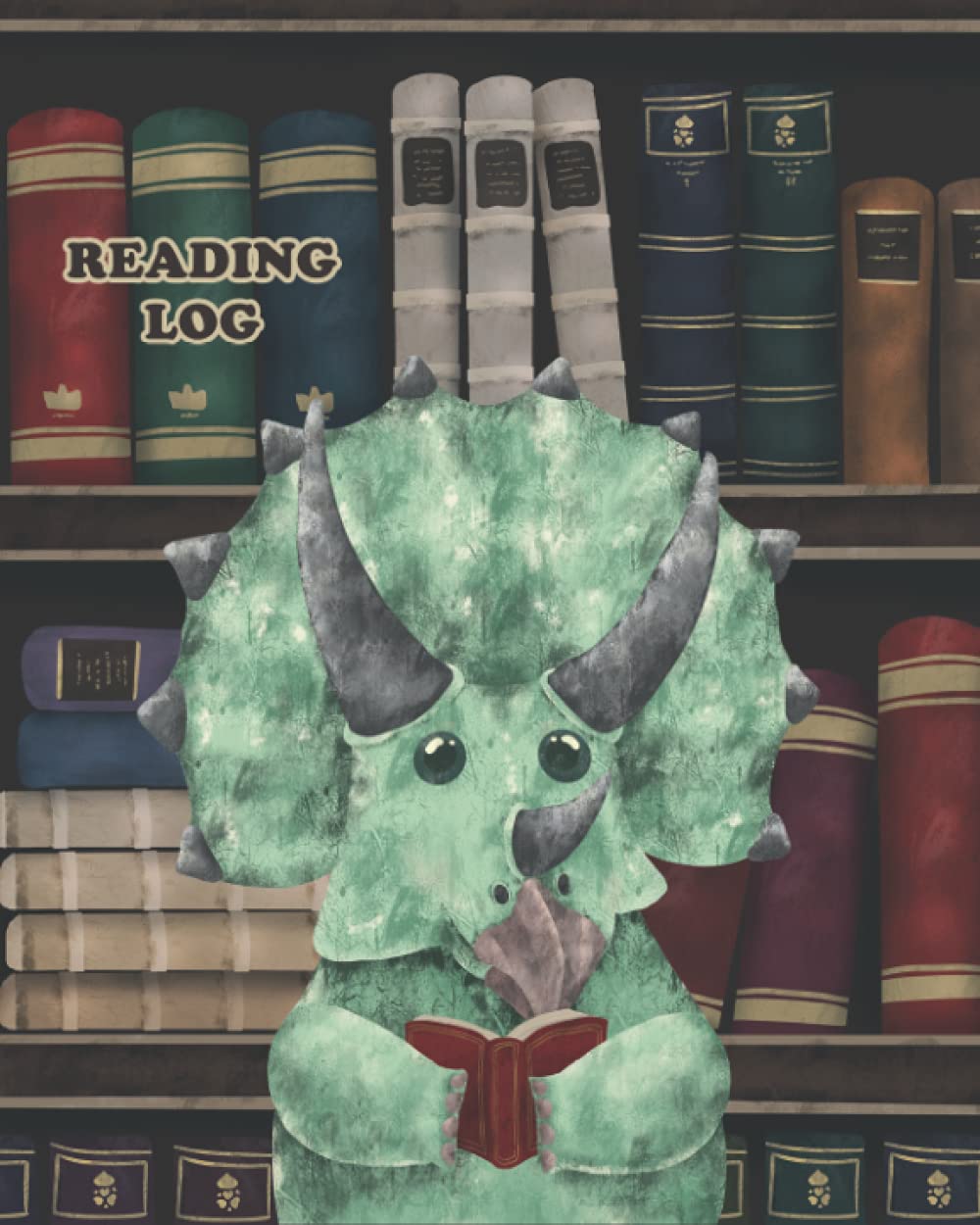 Reading Log: Triceratops Dinosaur and Bookshelf art cover, Reading log book for kids Dinosaur, Book Review Journal, Reading Log Journal, Reading Log .|Books