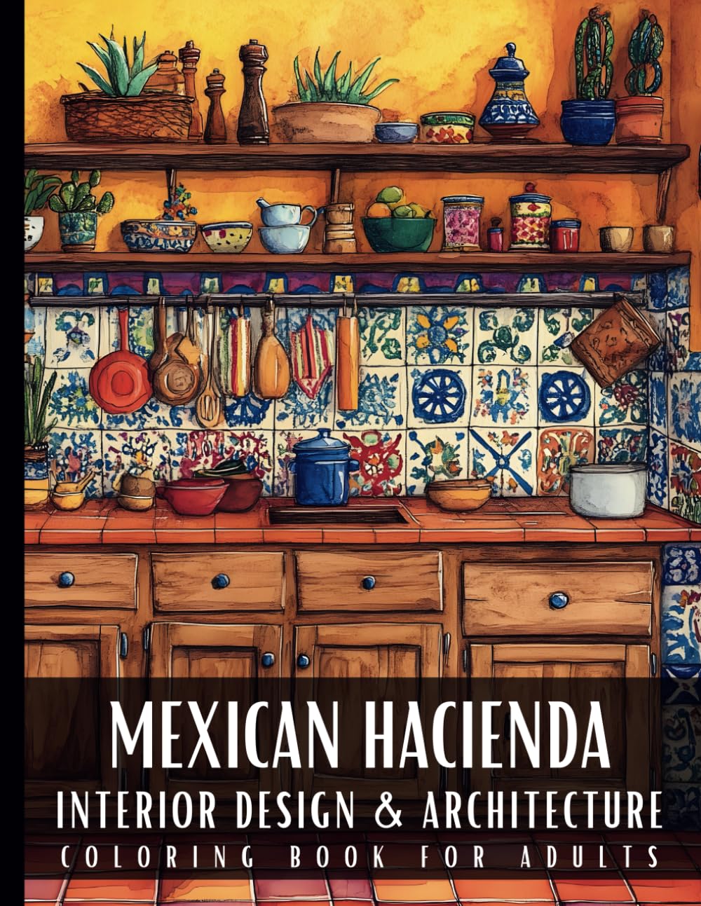 Mexican Hacienda Interior Design & Architecture Coloring Book for Adults: 50 Large Print Detailed Home Decor Colouring Scenes Ideal for Perfect Stress|Books