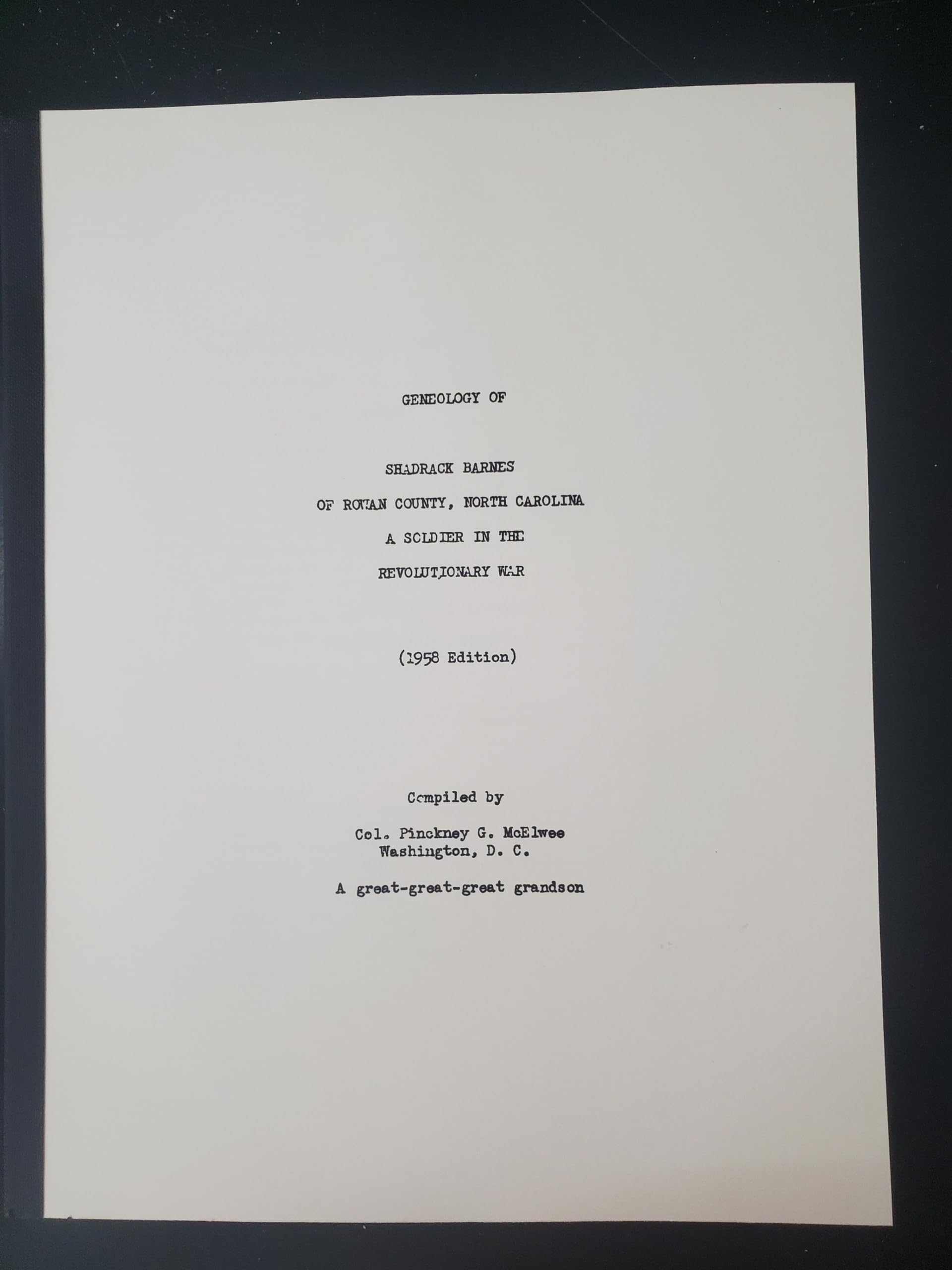 Genealogy of Shadrack Barnes of Rowan County, North Carolina: A Soldier in the Revolutionary War.|Books