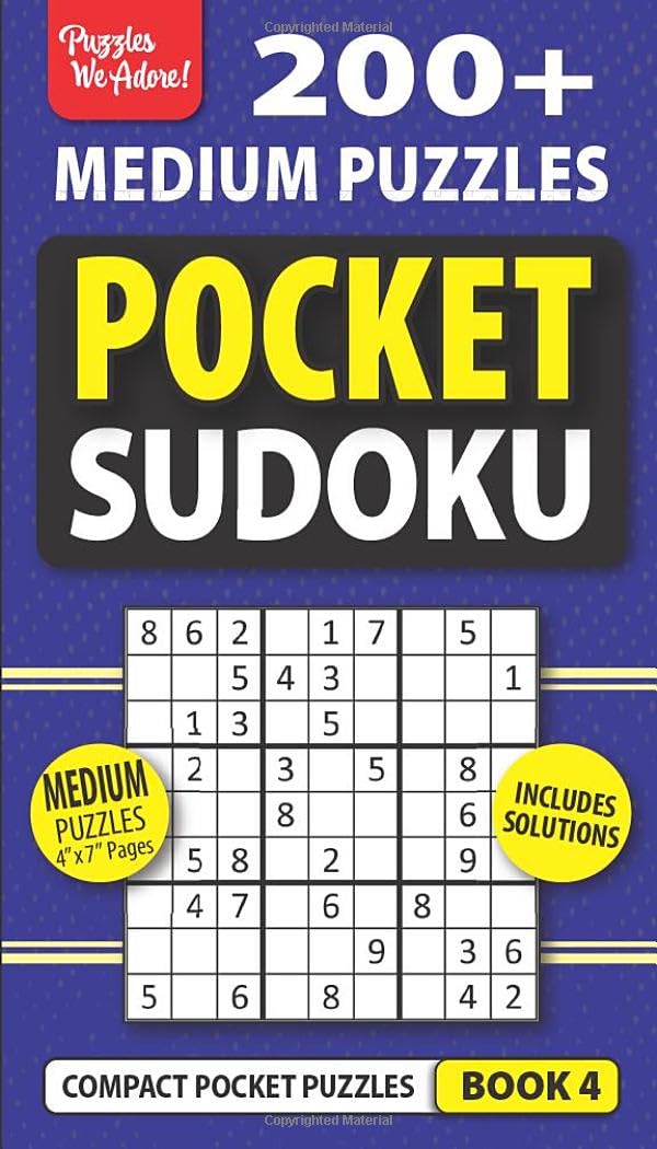 Pocket Puzzle Books for Adults: 200+ Medium Level Sudoku Puzzles, Compact Travel Size, 4x7 (Sudoku Pocket Books For Adults)|Books