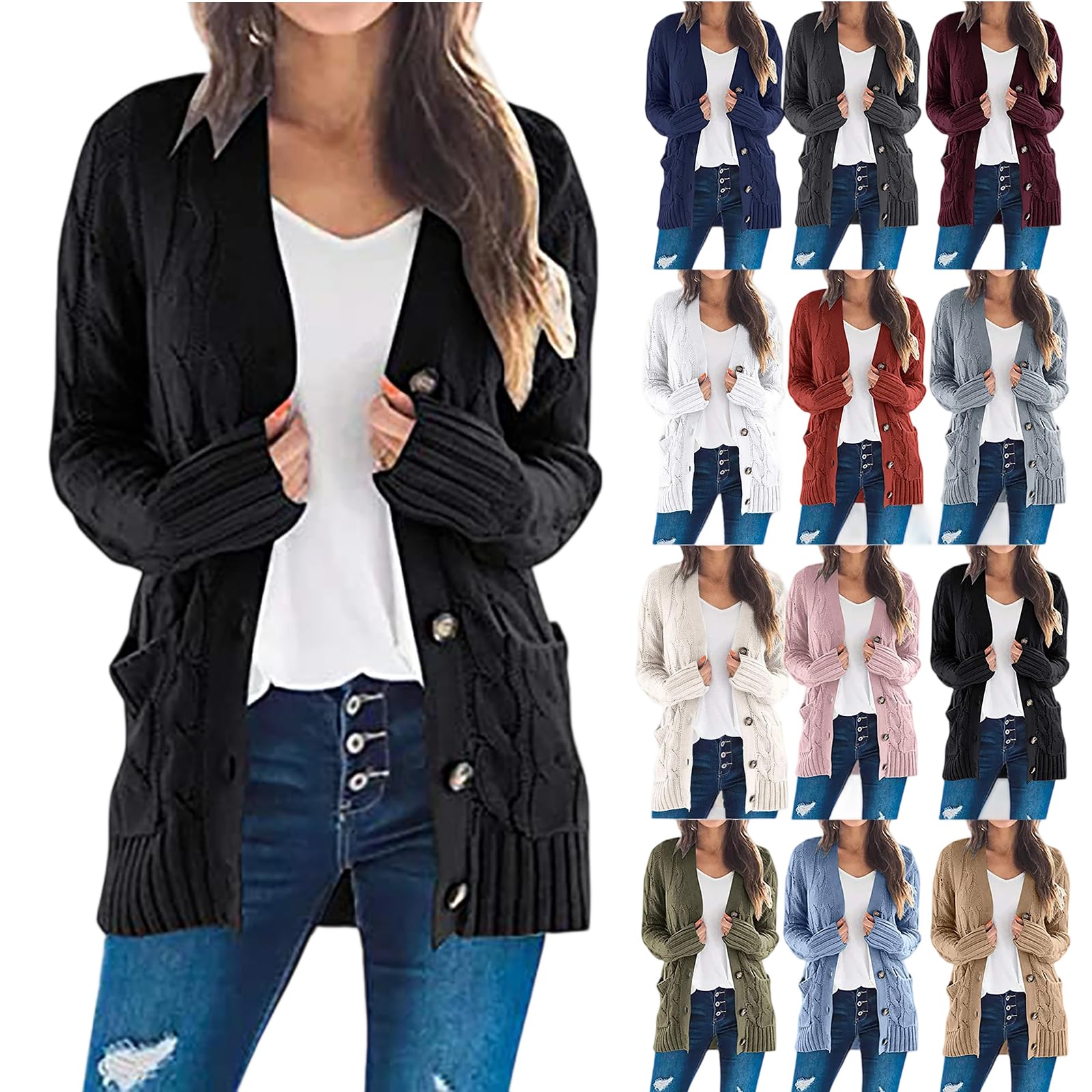 Sweaters for Women Open Front Fashion Cardigan Button Down Cable Knit Chunky Long Sleeve Fall Outfits|Clothing