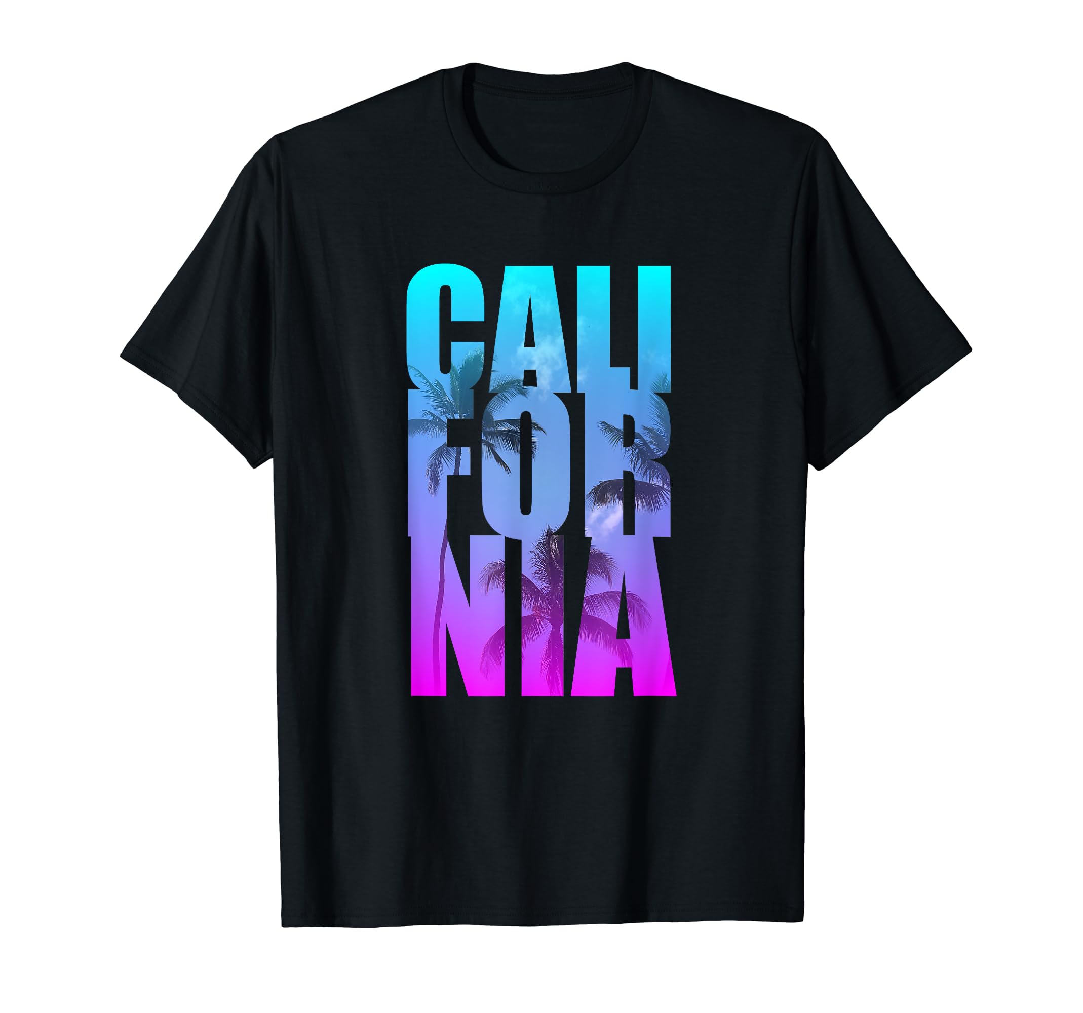 Turquoise Pink Ombre Tropical Palm Tree California T-Shirt|Clothing