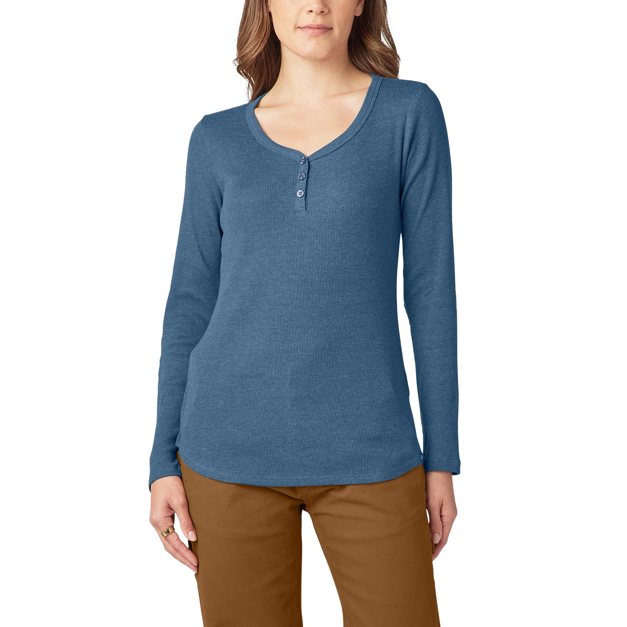 Dickies Women's Long-Sleeve 3-Button Henley Shirt|Clothing
