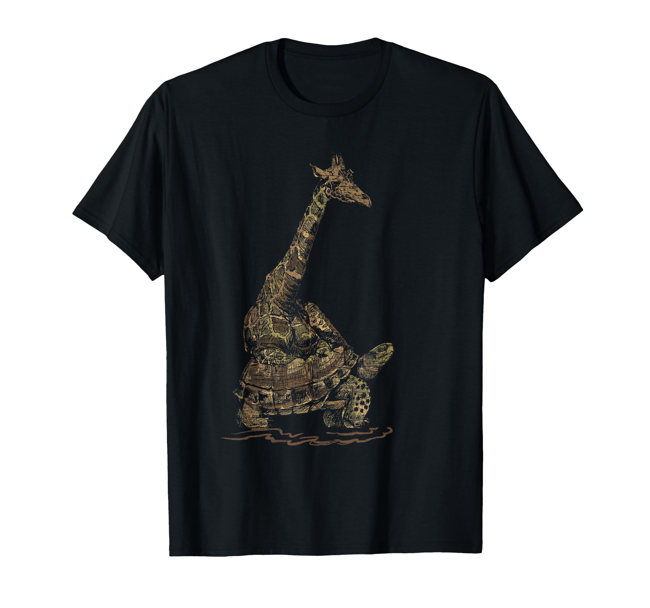 Turtle Riding Tee Zoo Keeper Gift Vintage Giraffe T-Shirt|Clothing