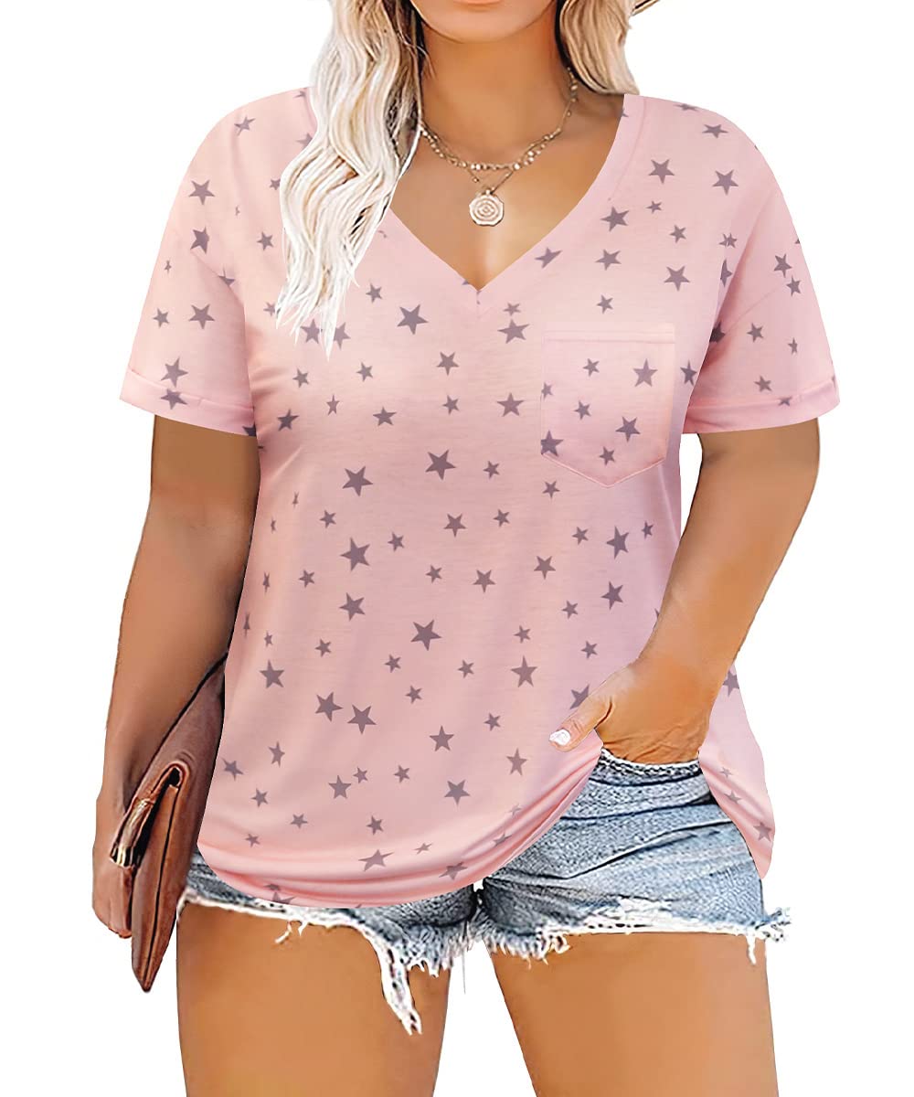 TIYOMI Plus Size Tops for Women Short Sleeve Shirts V Neck Basic Casual Tunic Floral/Aniaml Color Soft Blouses XL-5XL 22W-28W|Clothing