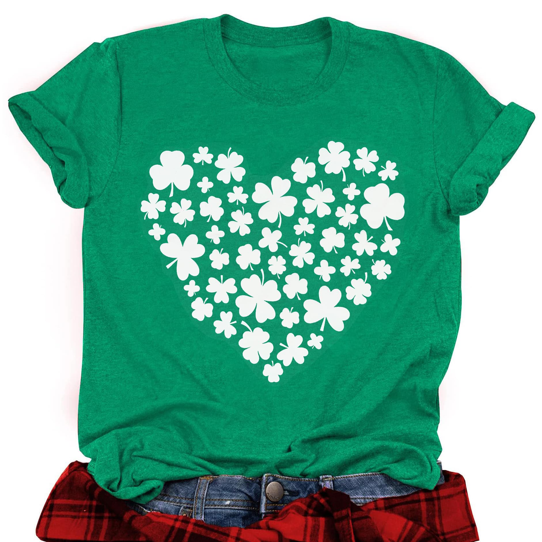 St. Patrick's Day Shirt Women Shamrock Green T-Shirts Short Sleeve Lucky Irish Bleached Tops|Clothing