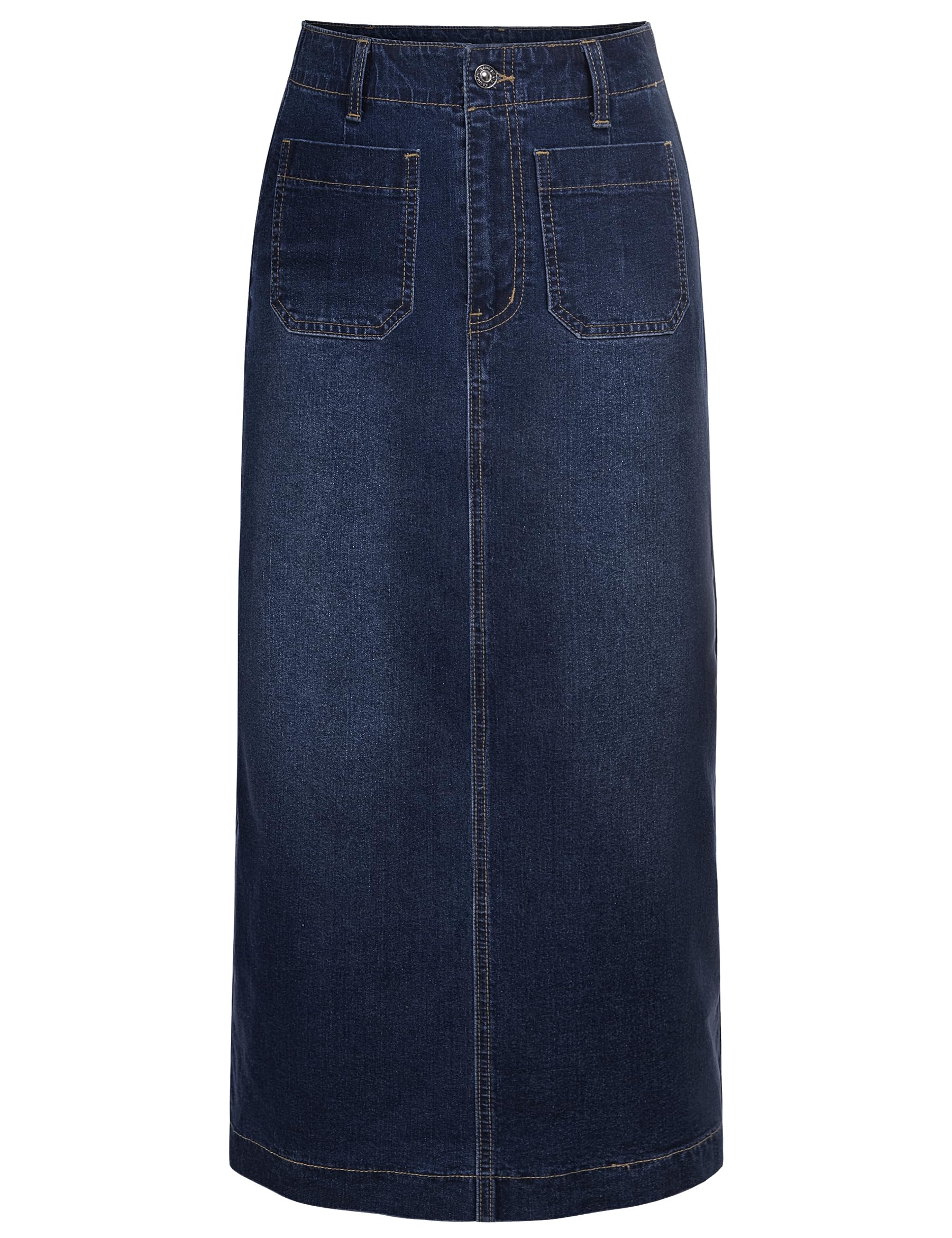 POTILI Long Denim Skirt for Women Stretch Maxi Skirt with Back Slit High Waisted Pencil Jean Skirt with Pockets Casual|Clothing