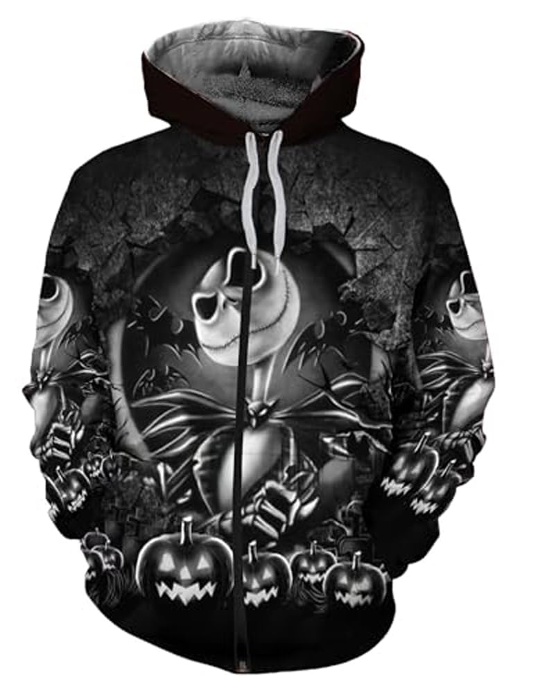 Wxmiyno Men Jack Halloween Cosplay 3D Print Hooded Jacket Women Sally Costume Long Sleeve Sweatshirt Pullover Zip|Clothing